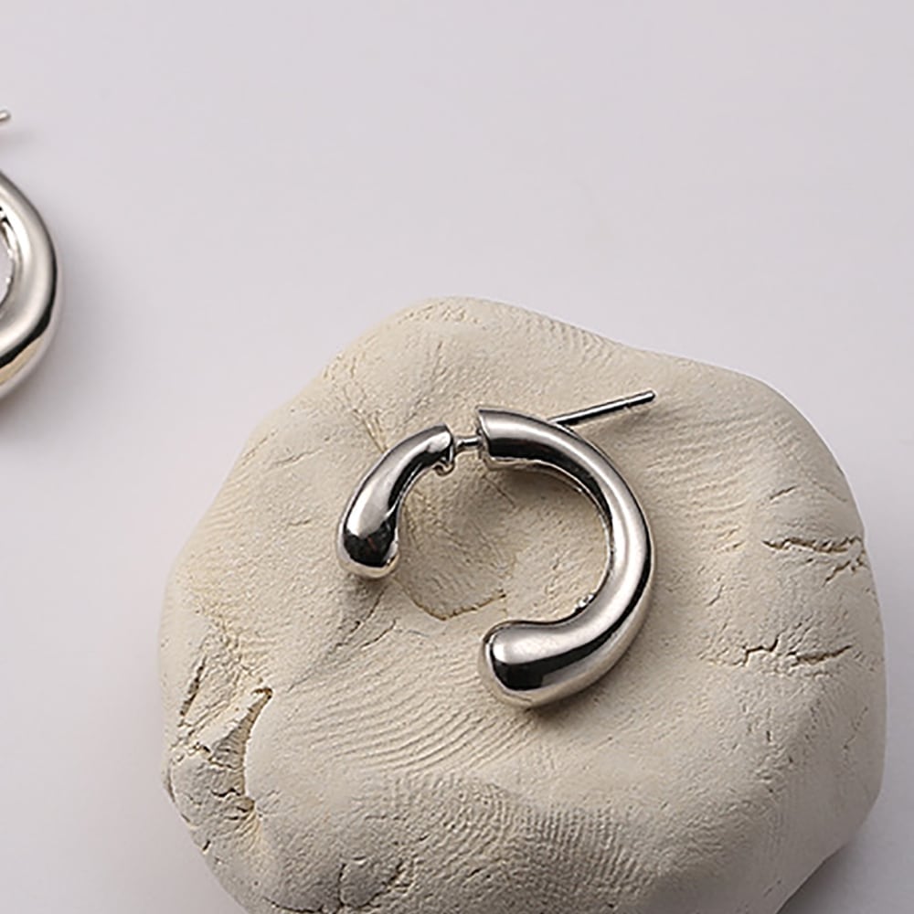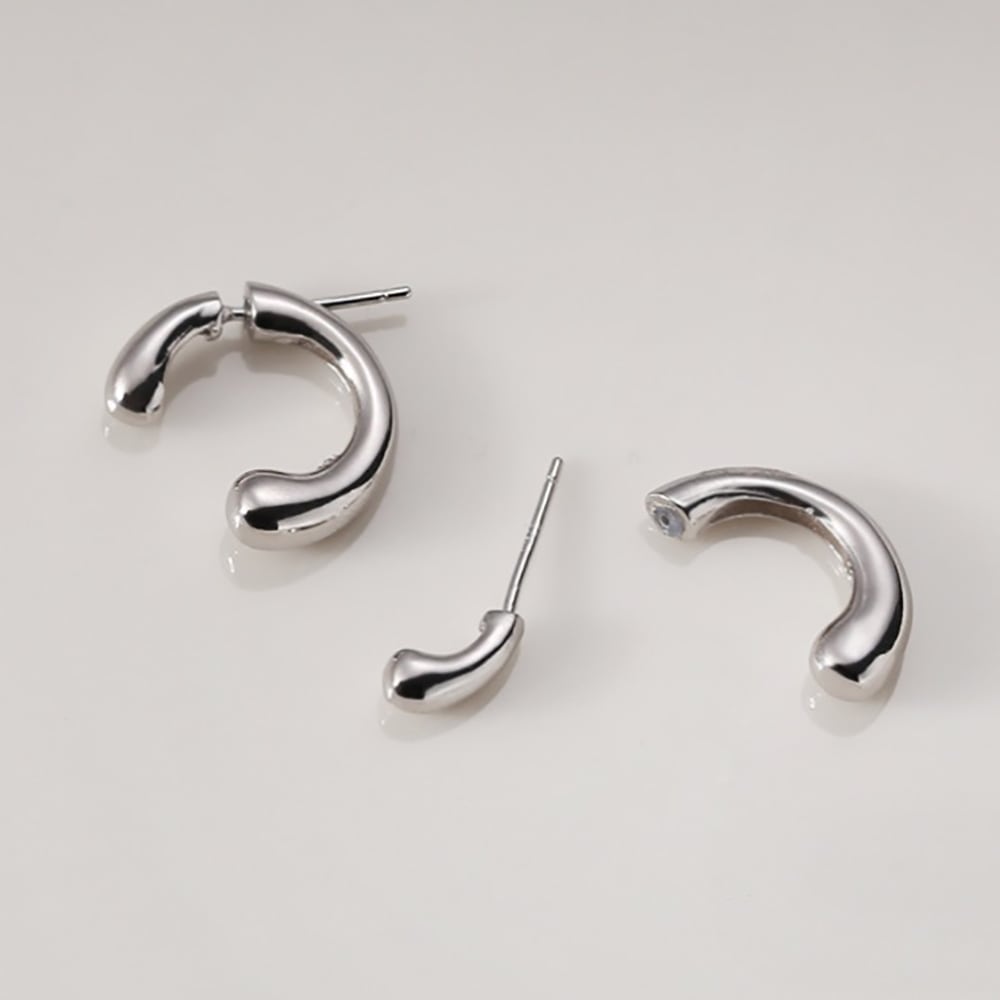 キャッチ部分とつなげるとCのような形になっている独創的なデザインのピアスです。
