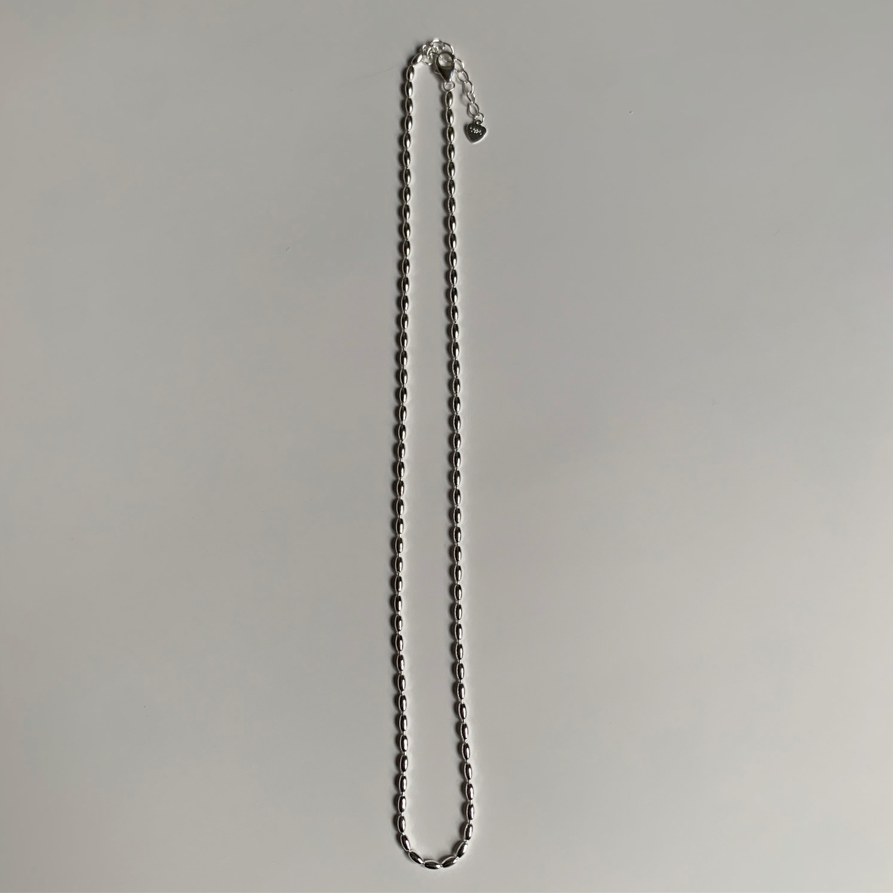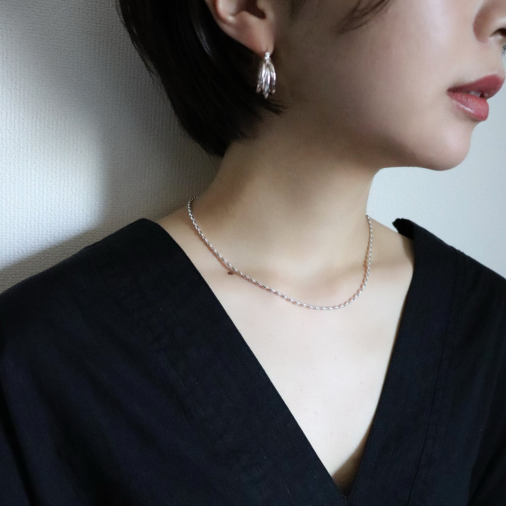 単品でも重ねても合わせやすい、程よいボリュームのチェーンネックレスです。