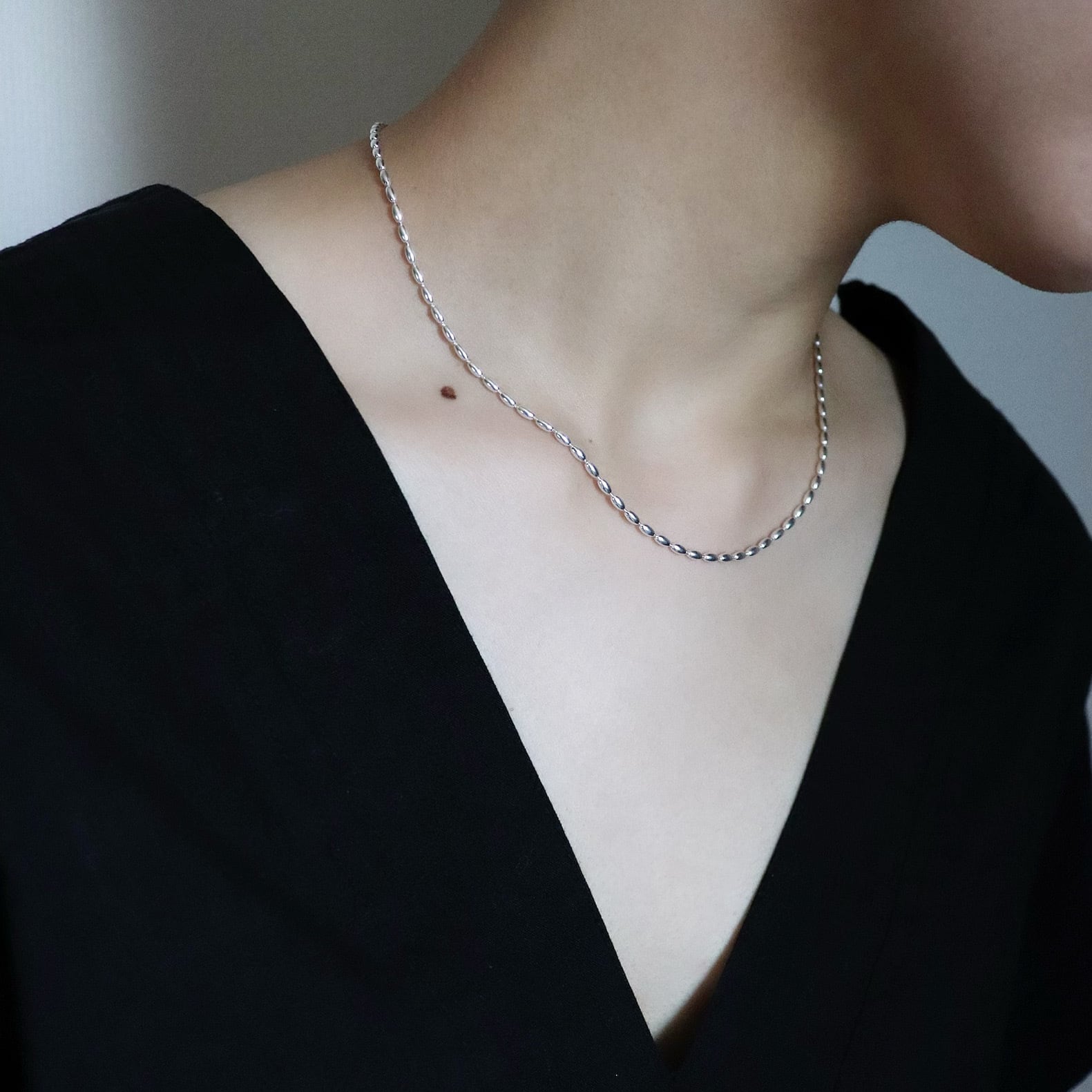 存在感のあるオーバルなボールチェーンをシンプルなネックレスに。