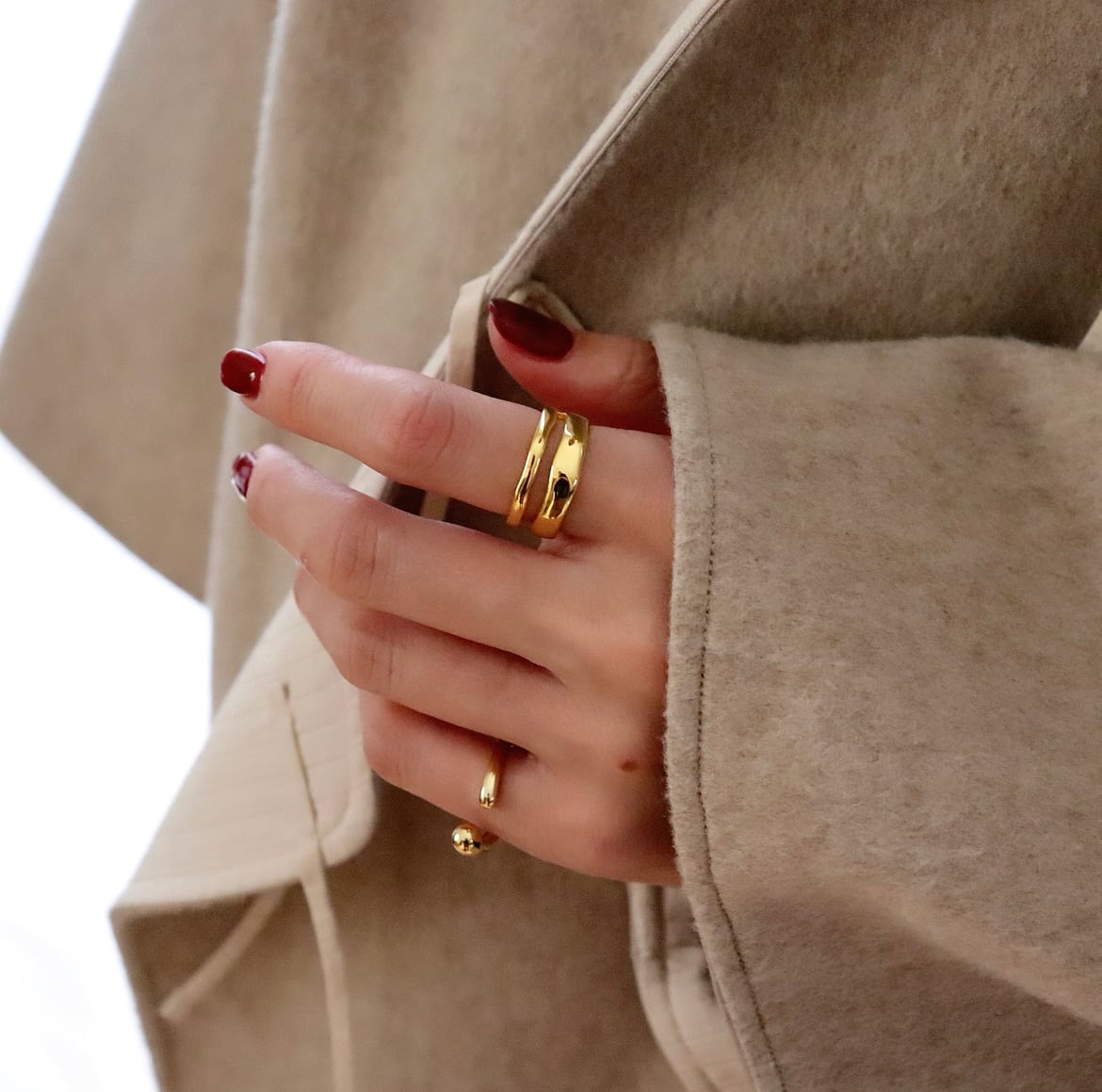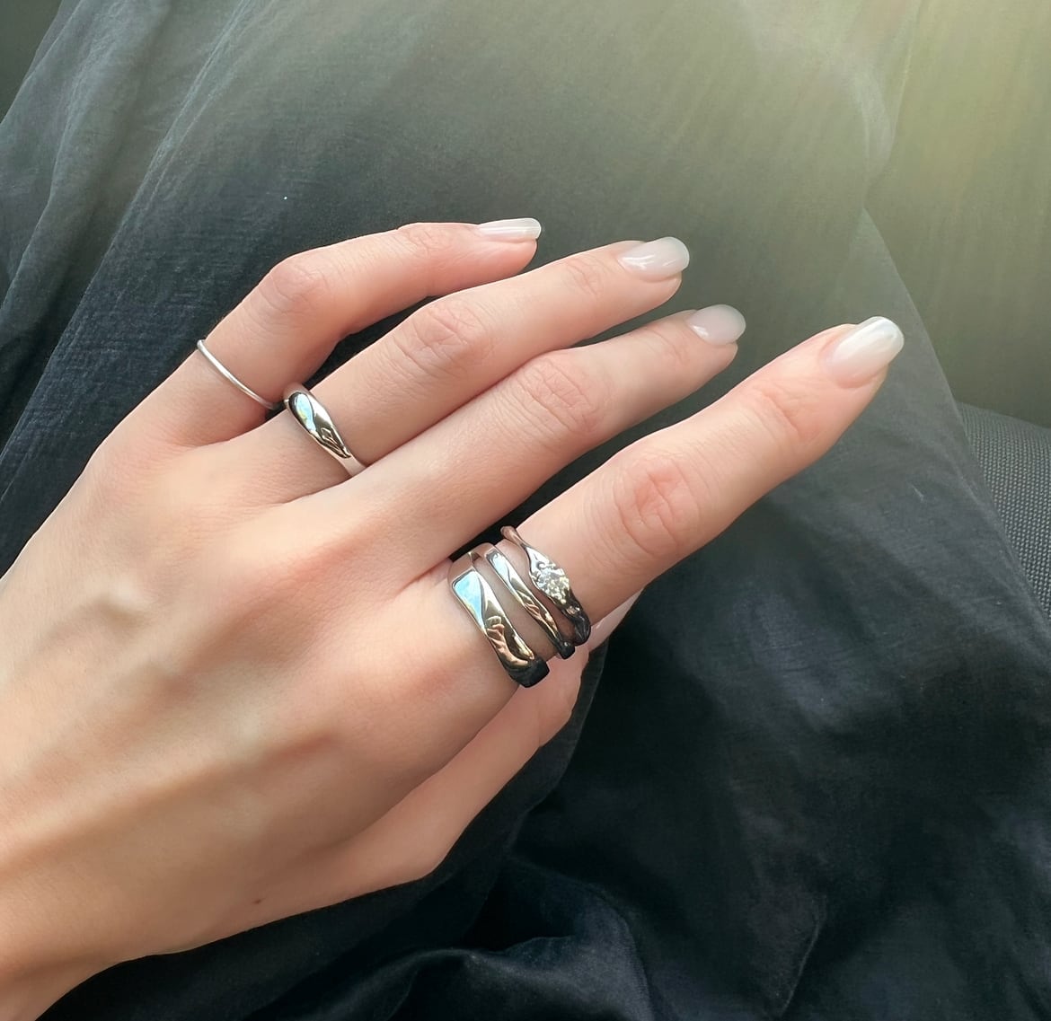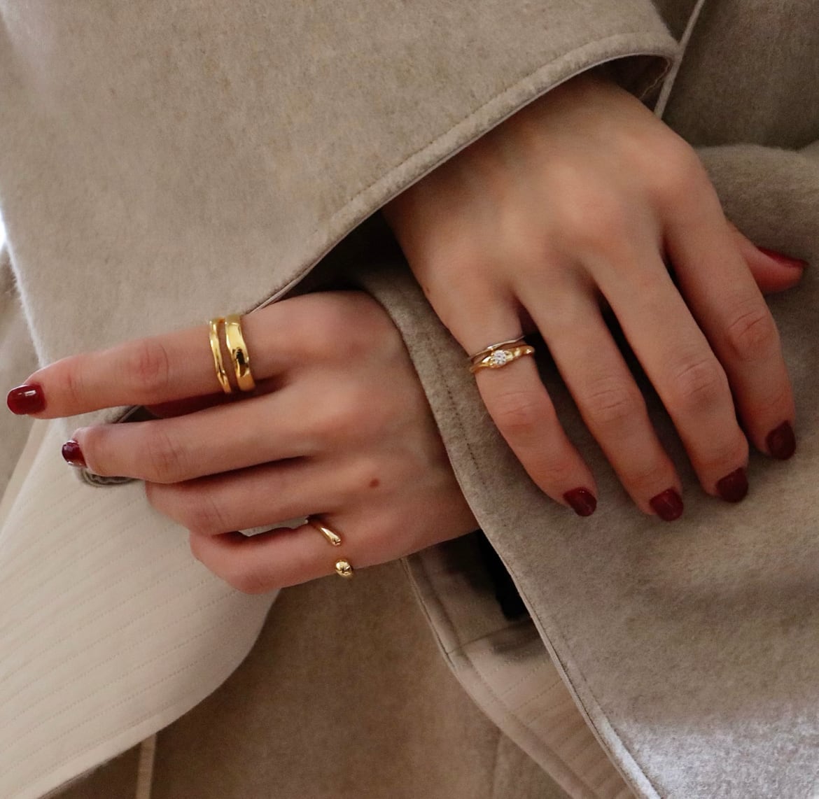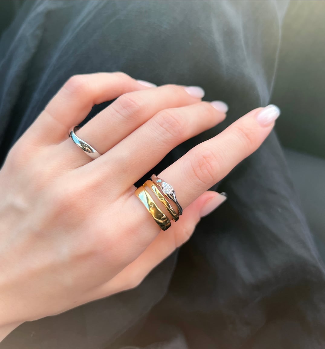 シンプルながらもデザイン性のあるリングはいつもの指先に特別な表情をプラスしてくれます。