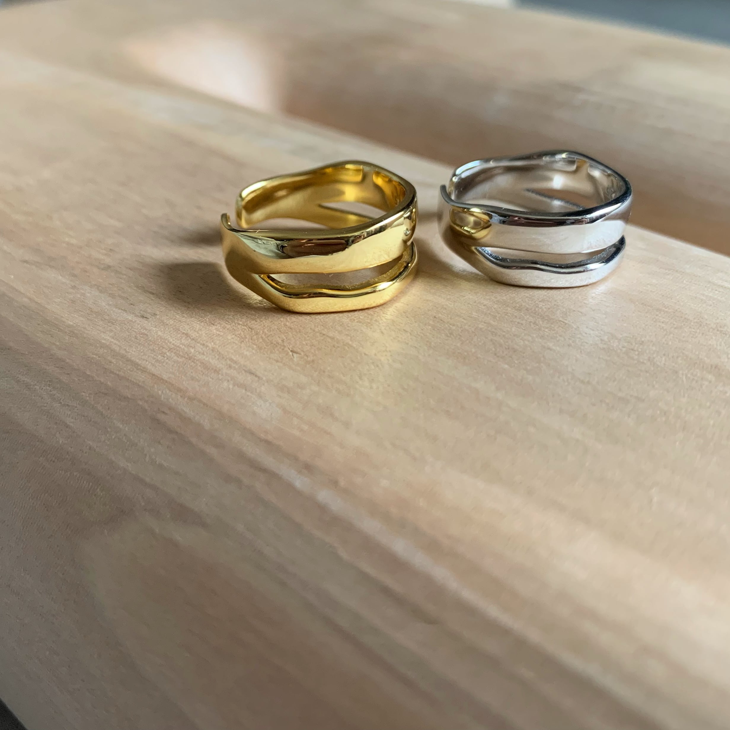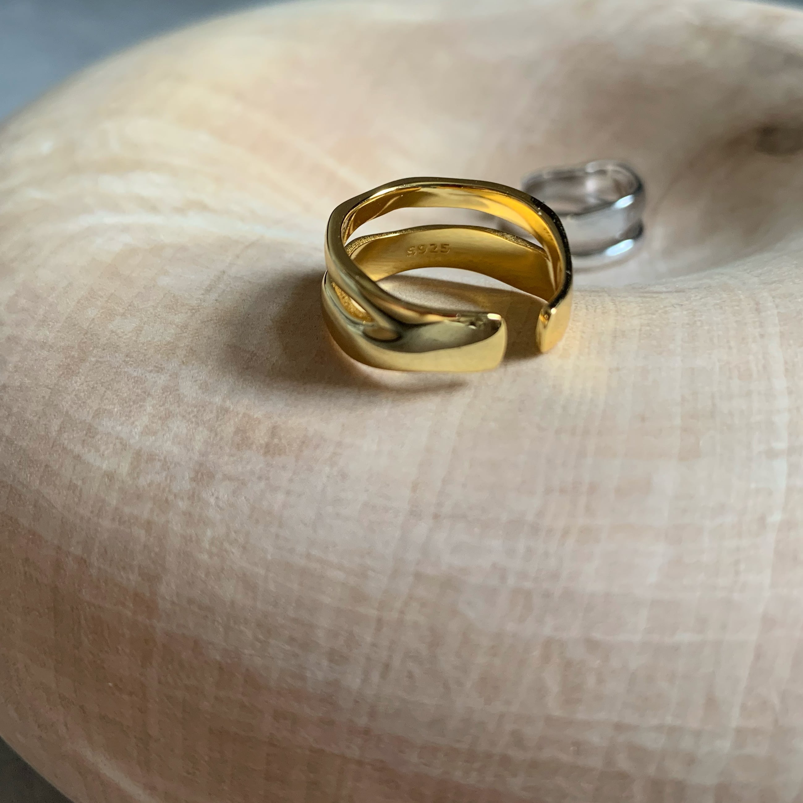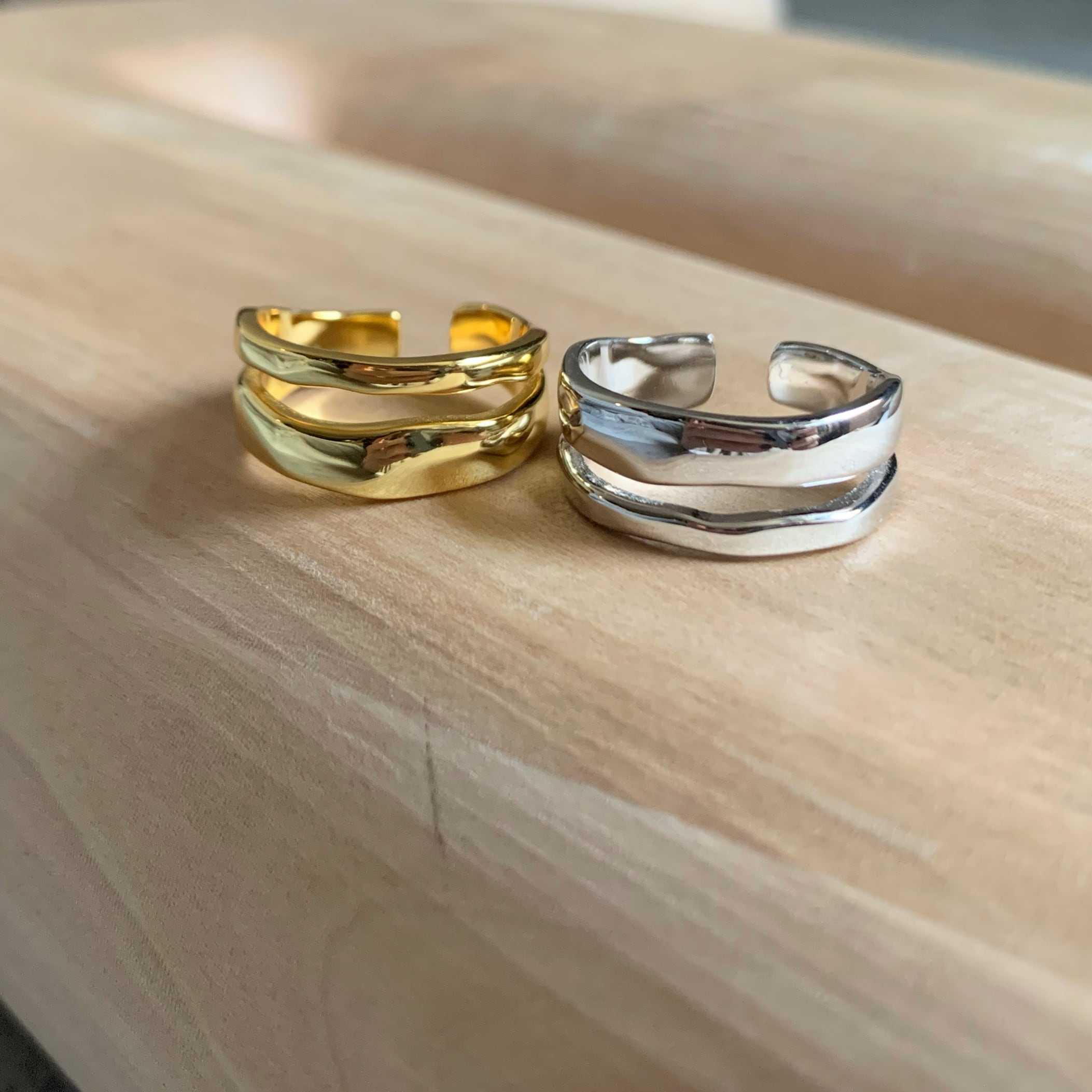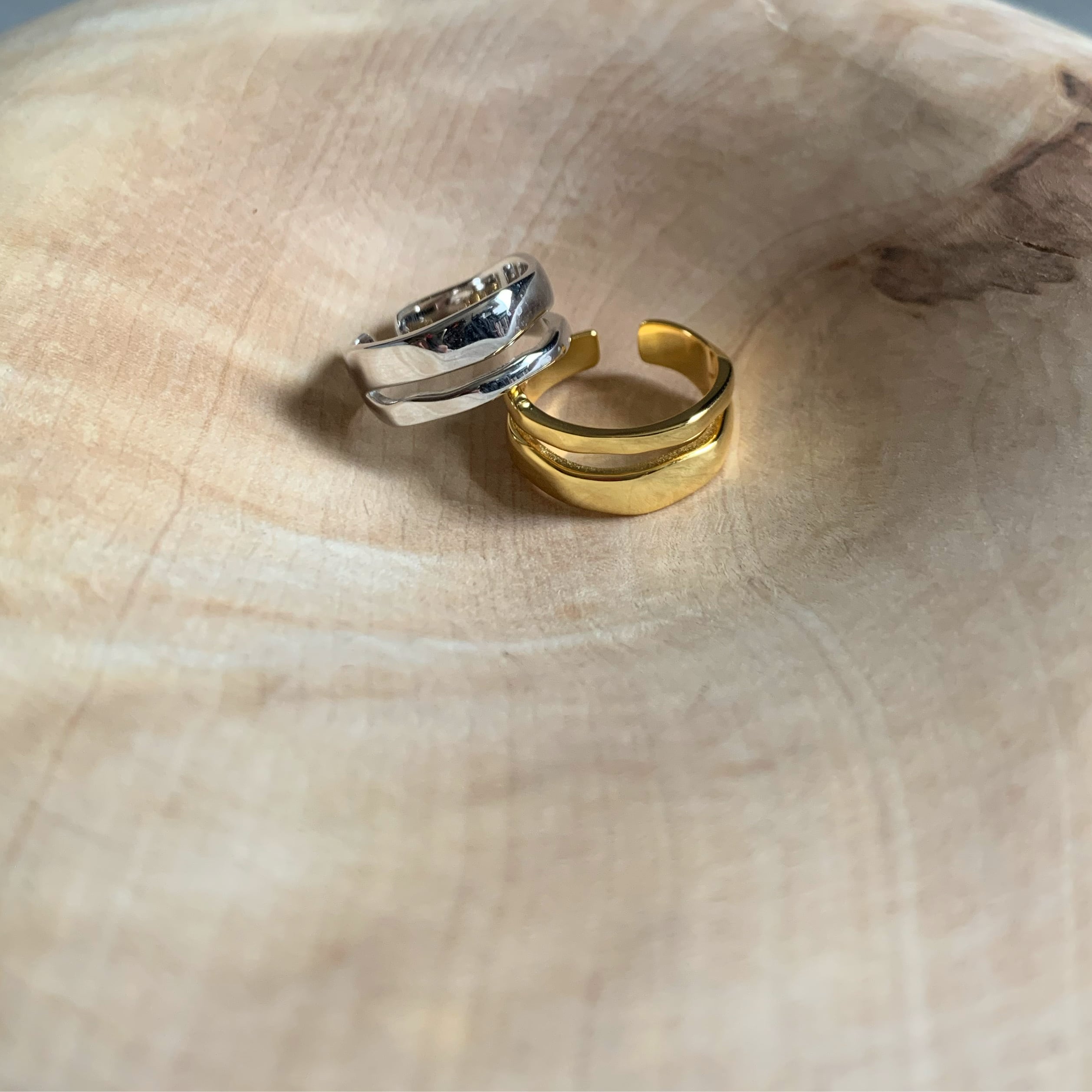 silver925素材の2連のリングをしているようなデザインリングです。