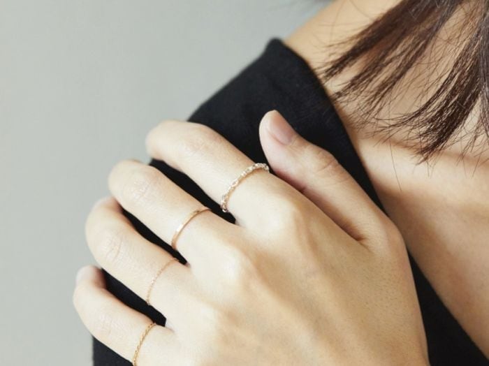 0.2mmの細さで、軽い着け心地のチェーンリングはデイリーにお使いいただけます。