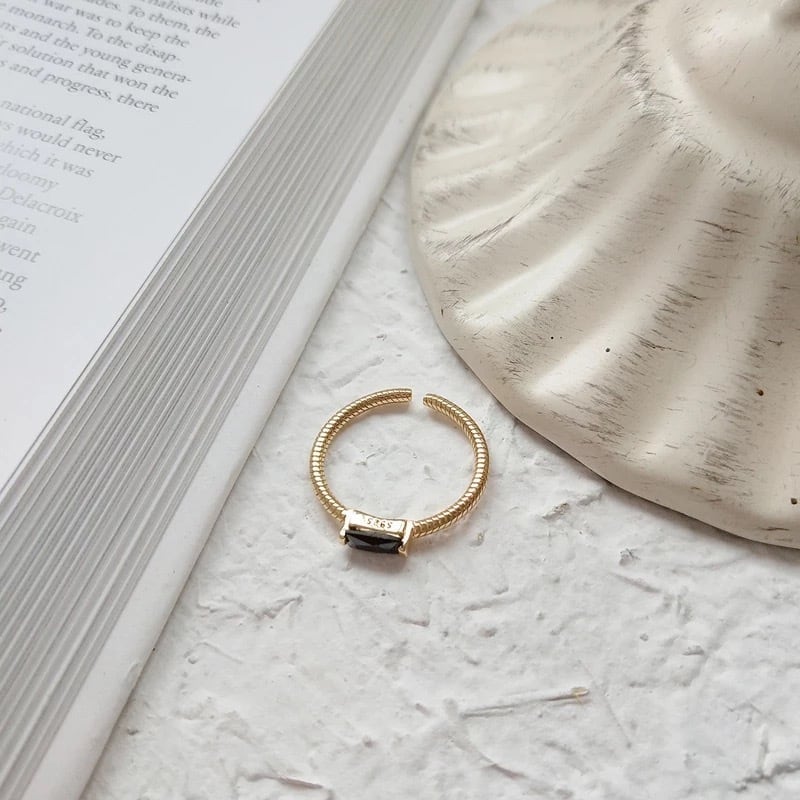 silver925、ゴールドカラーのブラックオニキスリング。