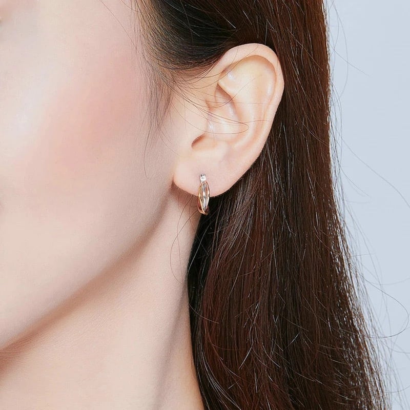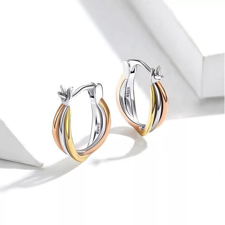 シルバー、ゴールド、ローズゴールドのラインがクロスした上品なデザインです。