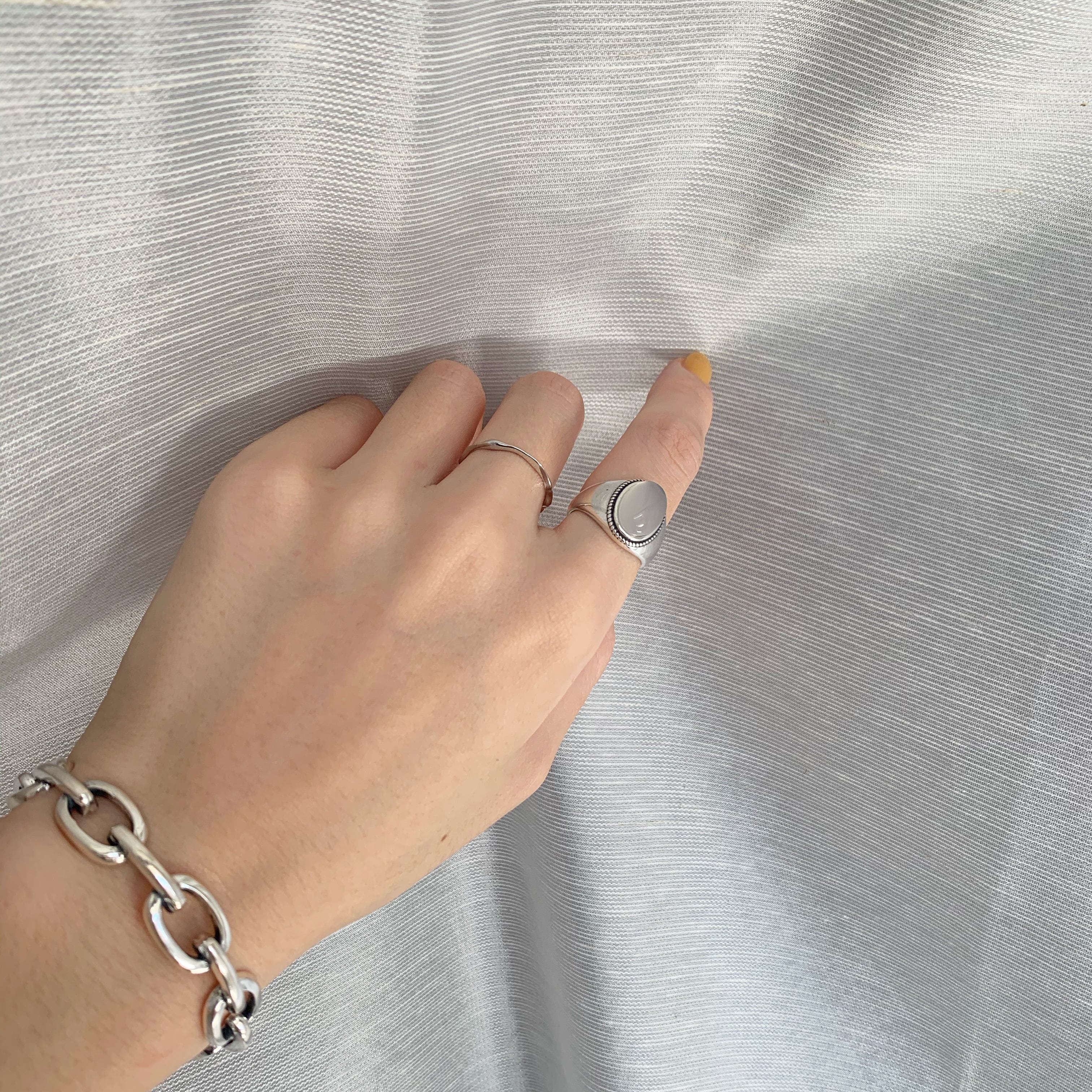 また、丸みを帯びたデザインになっているので、ユニセックスなリングデザインと女性的な雰囲気の両方をお楽しみいただけます。