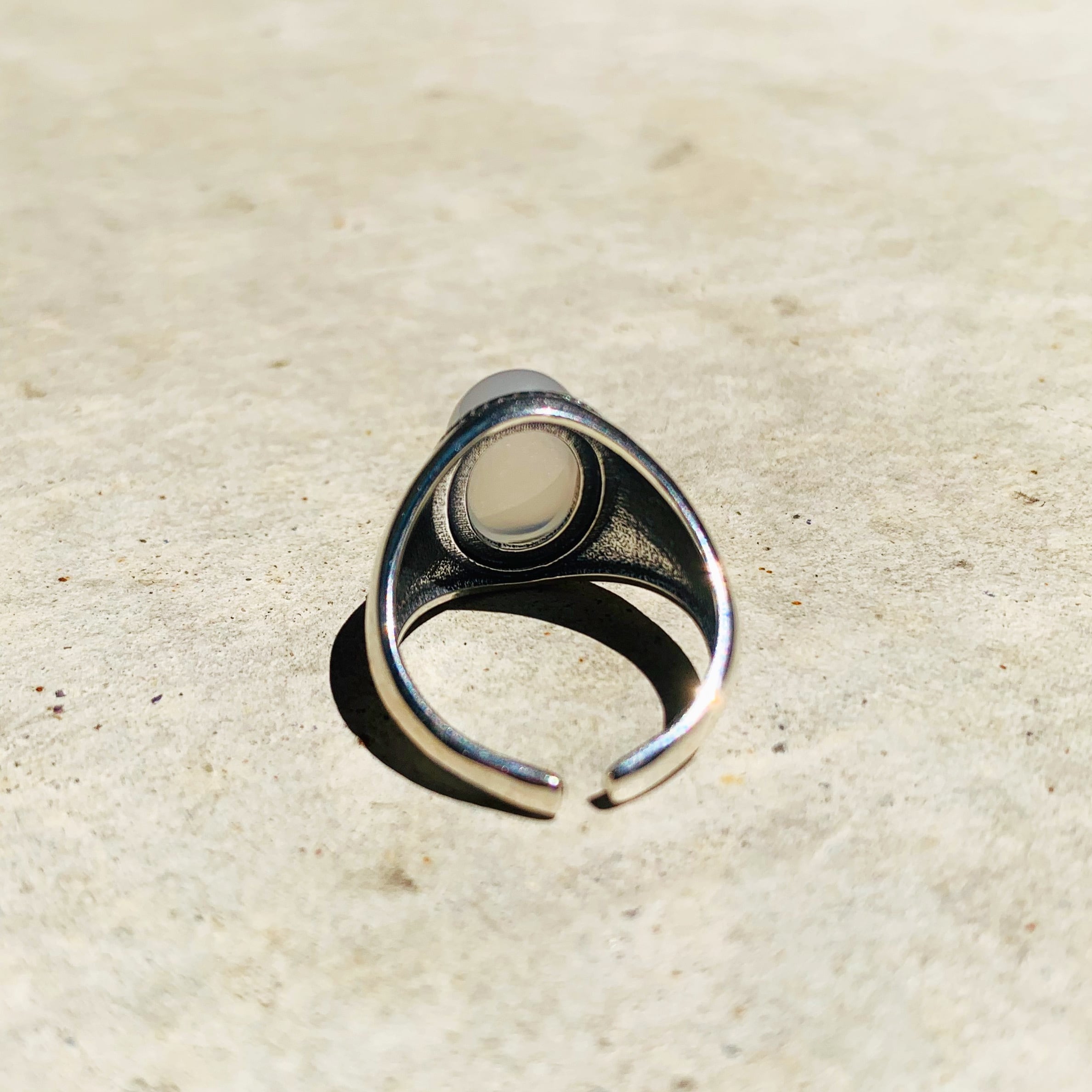 シンプルなデザインですが、見る角度や光によってムーンストーンの表情が変わり、素材の面白さを感じられるアイテムになっております。