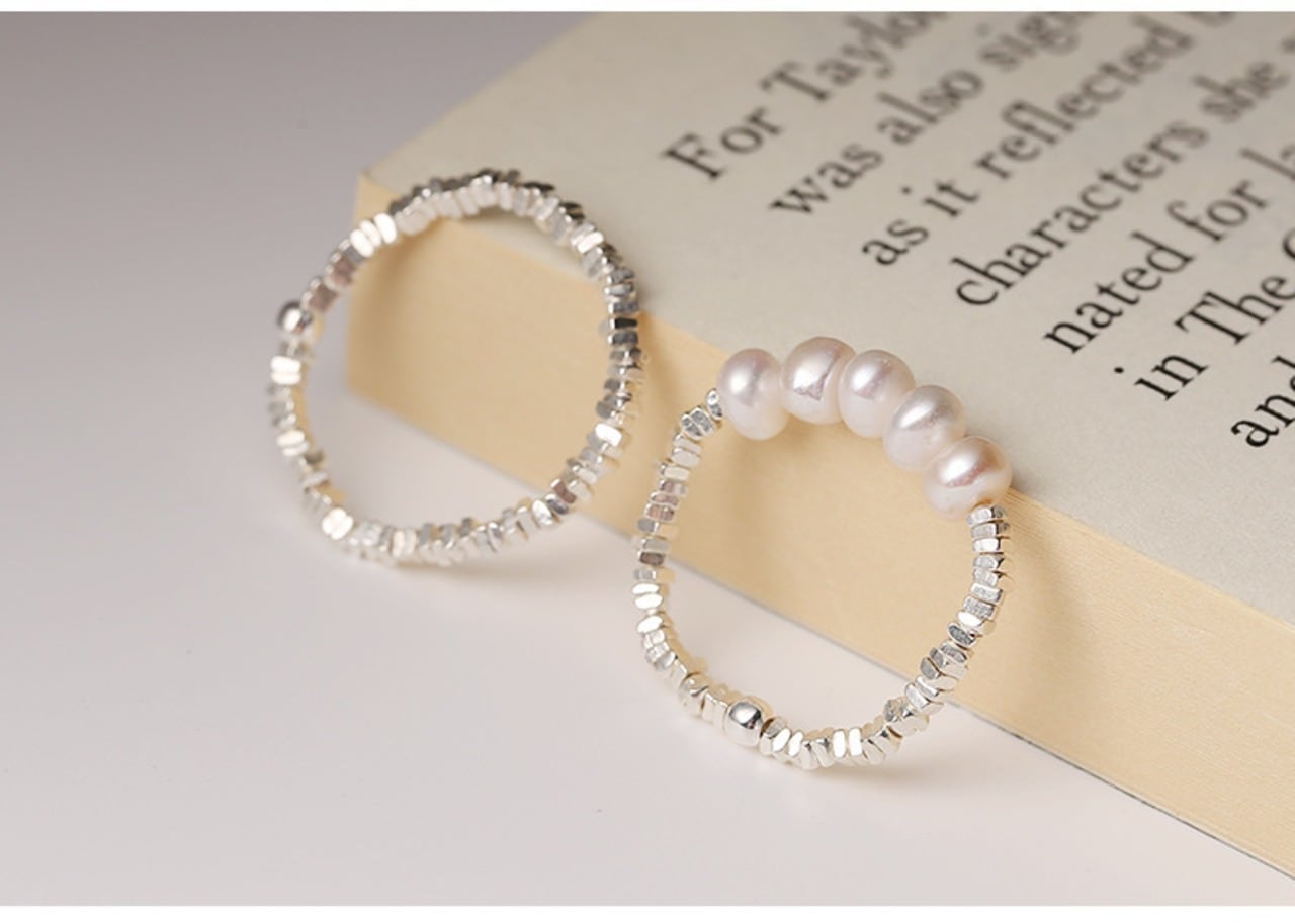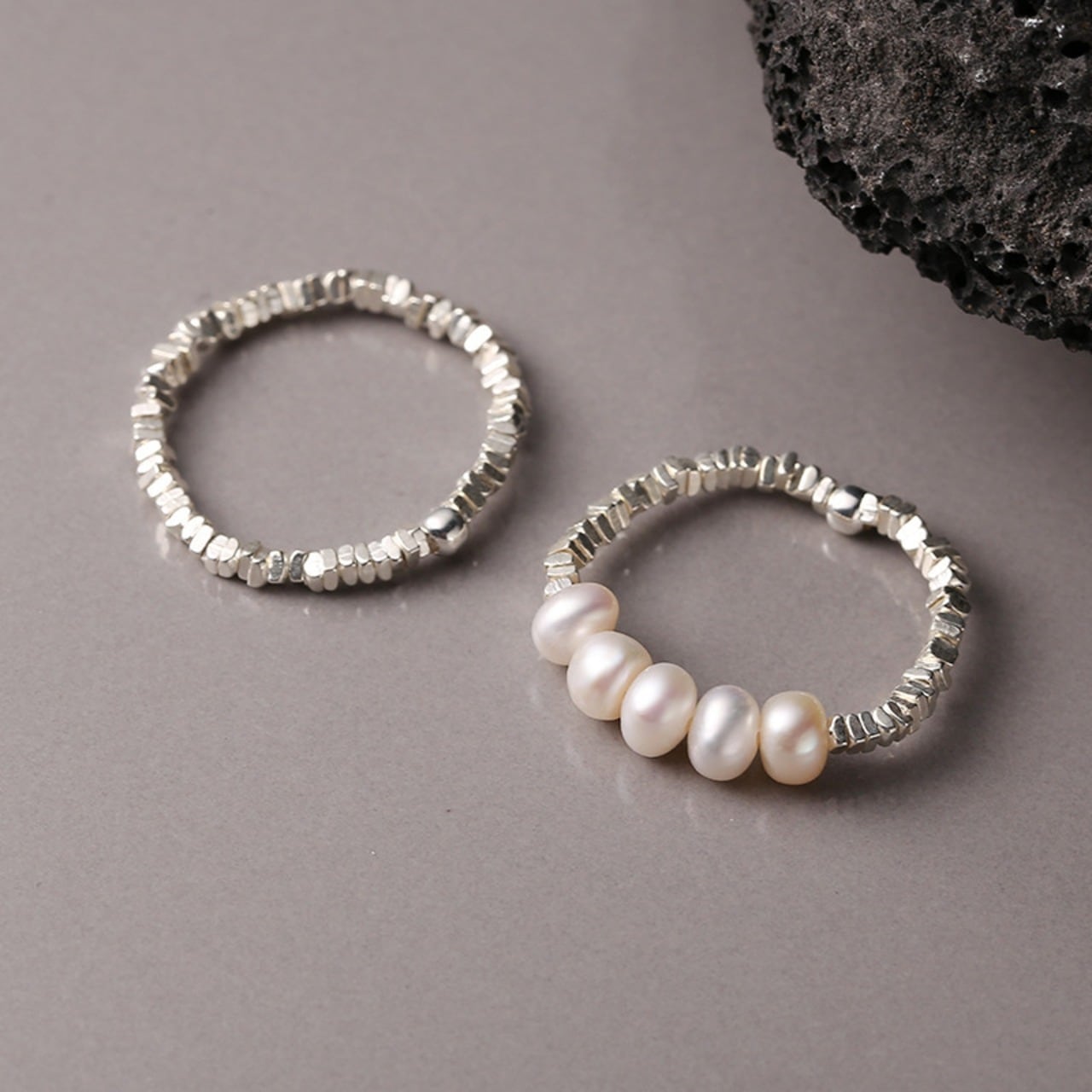 シンプルで上品な雰囲気が漂う、刻みシルバーリングの2個セット。