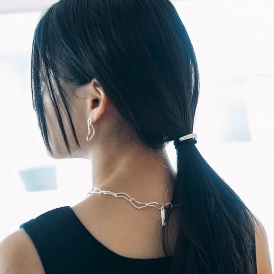 メタルの光沢がカジュアルにもキレイめにも馴染み、結ぶだけで上品なバックスタイルを叶えます。