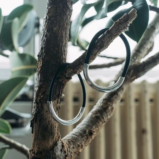 異なるカーブを描くメタルパーツが印象的なヘアゴム2本セット。