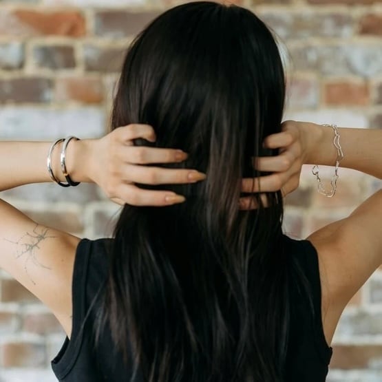 手首に重ね付けしてアクセントにするのもおすすめ◎