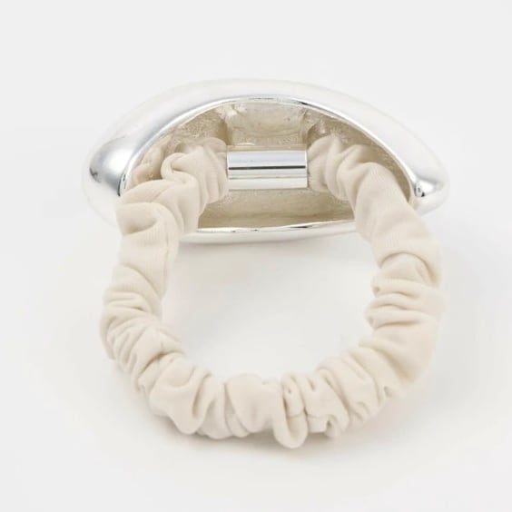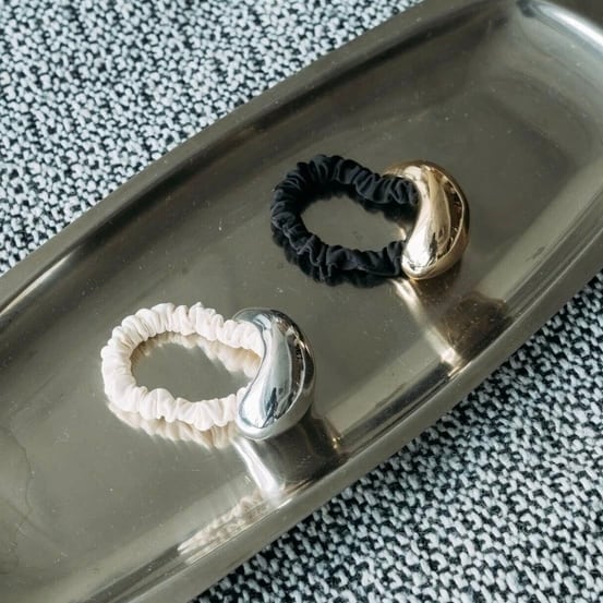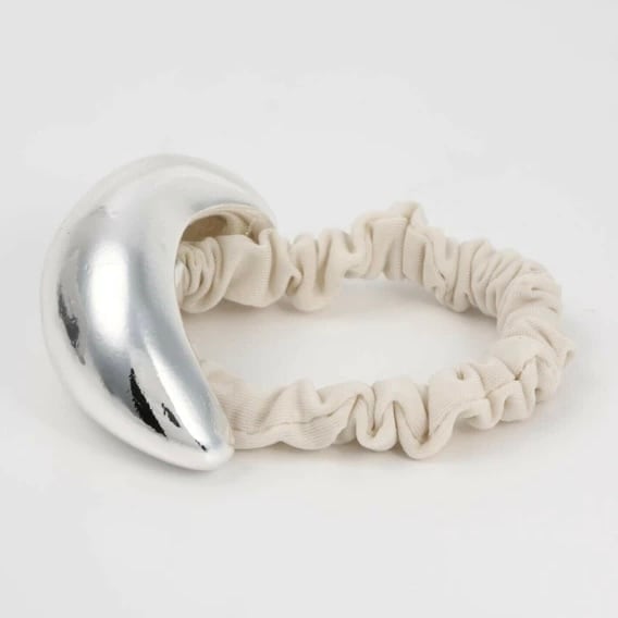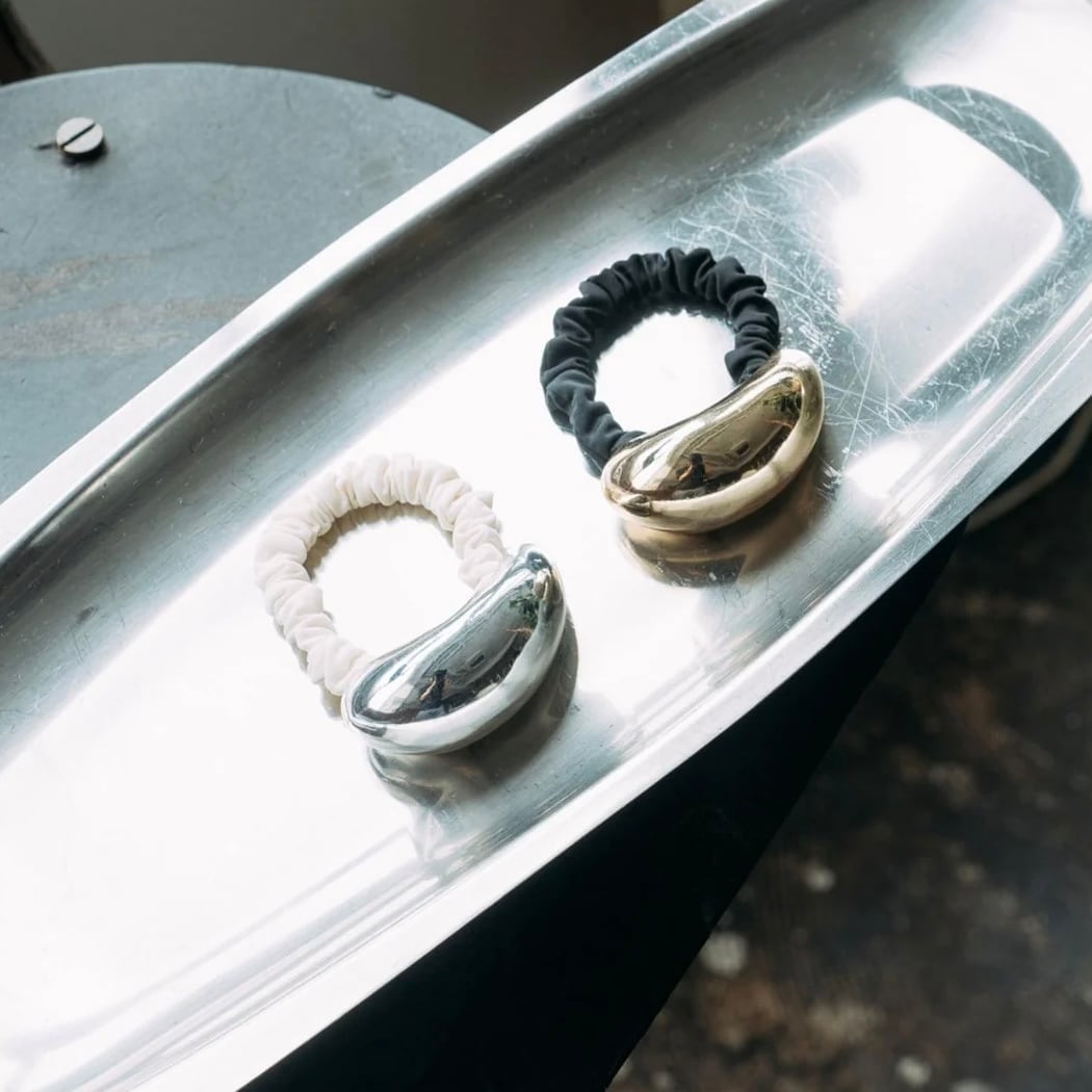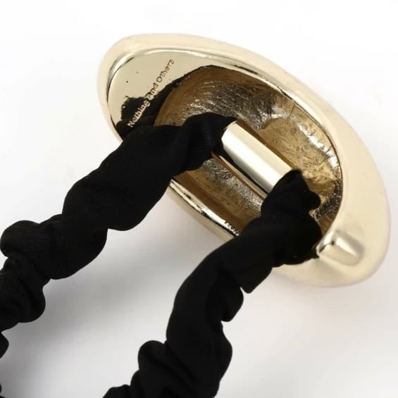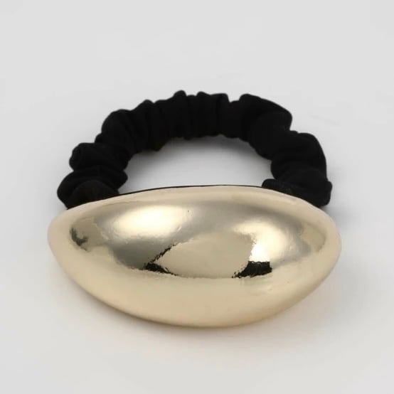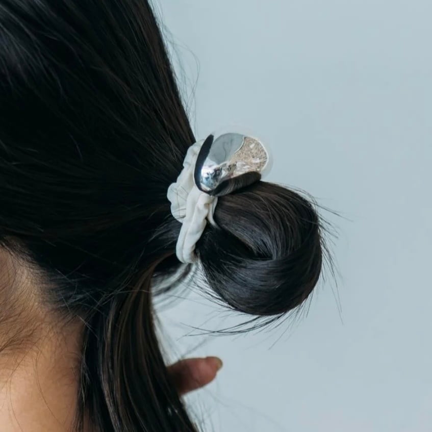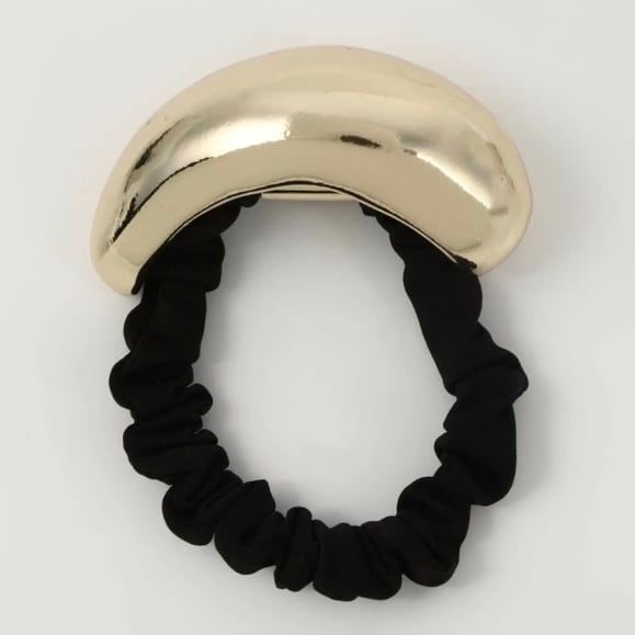 存在感のあるメタルモチーフが目を惹くシュシュ。