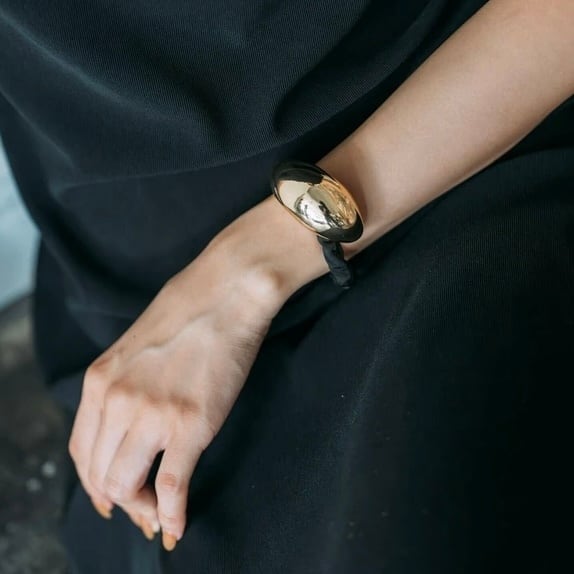 緩やかにカーブしたメタルモチーフがクールな印象の中に女性らしさをプラス。