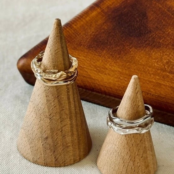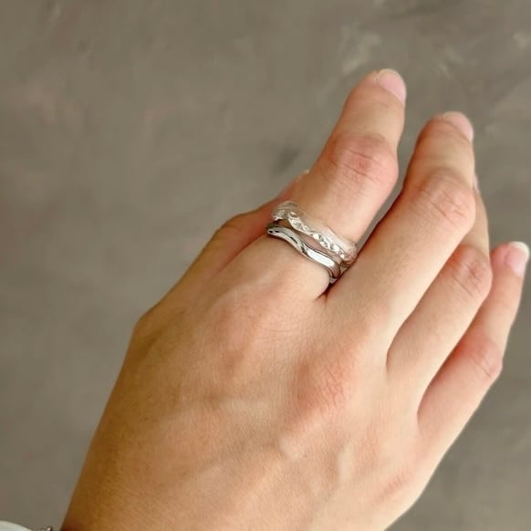 やわらかいカーブを描くウェーブリングと、みずみずしい透明感が魅力のクリアニュアンスリングの2本セット。