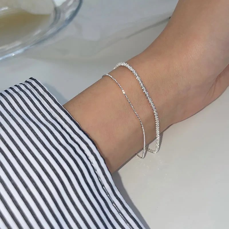 デザイン性のある2種類のチェーンを使用したブレスレット。