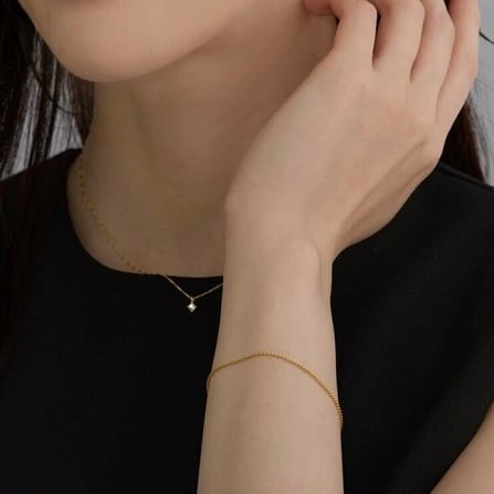 肌にやさしいニッケルフリー素材で仕上げた、華奢で上品なブレスレット。