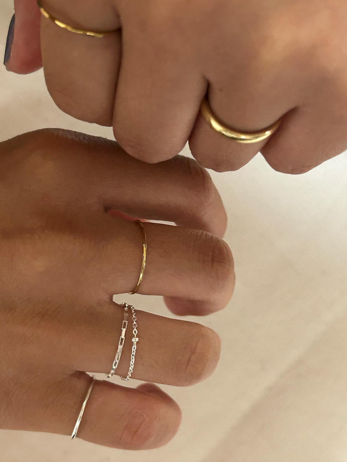 着けているのを忘れてしまうような着け心地の良いチェーンリングは、1本でも女性らしい手元に。