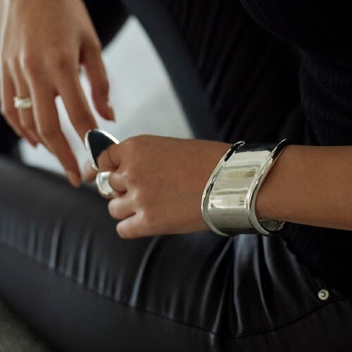 オールシーズン使えるメタル素材のアクセサリーは、コーディネートに程よいアクセントを加えてくれる優秀アイテム。