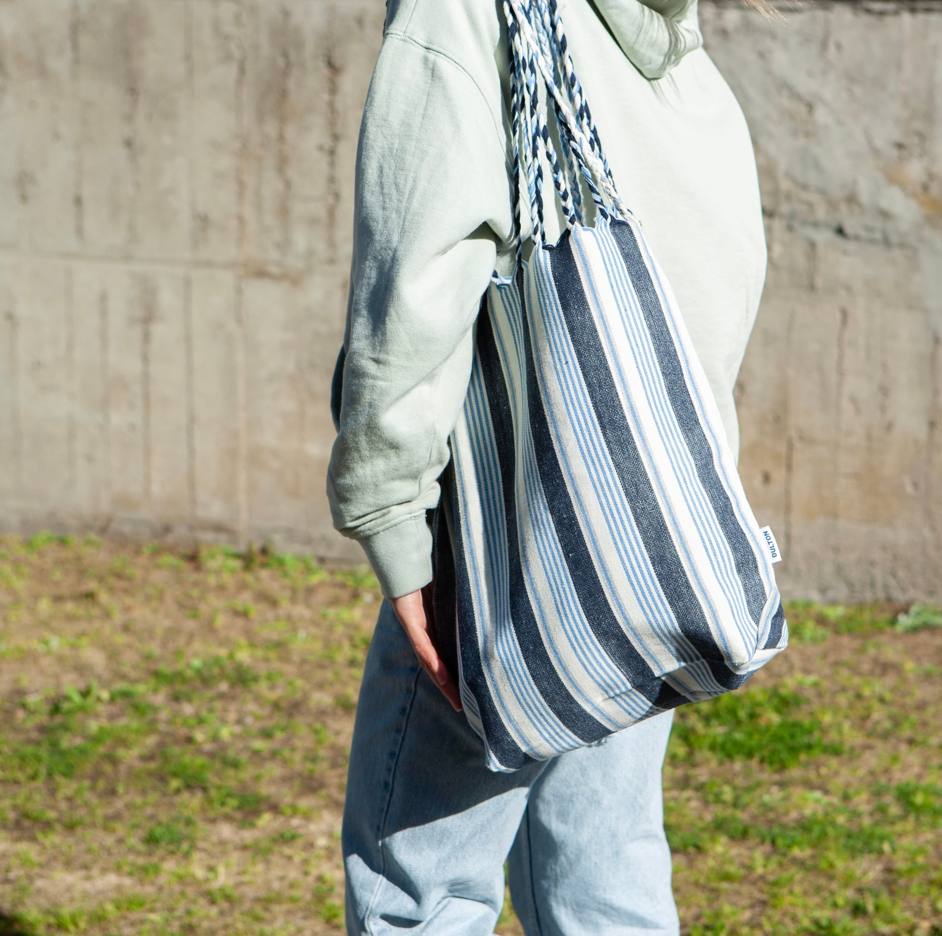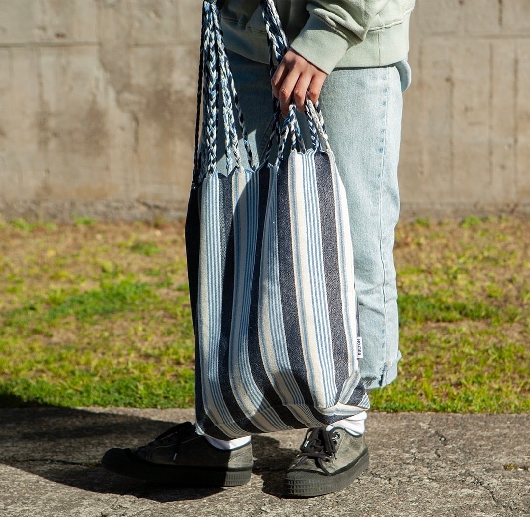 ハンモックを模した持ち手がユニークなトートバッグ。