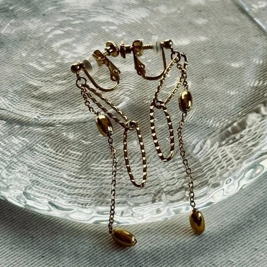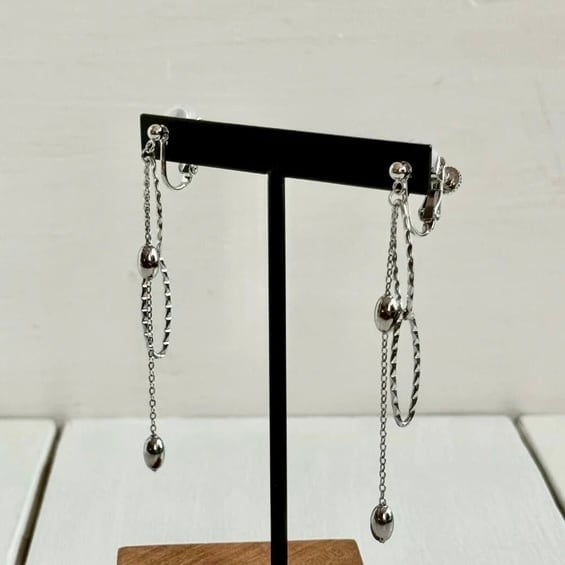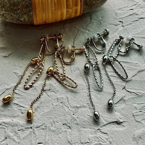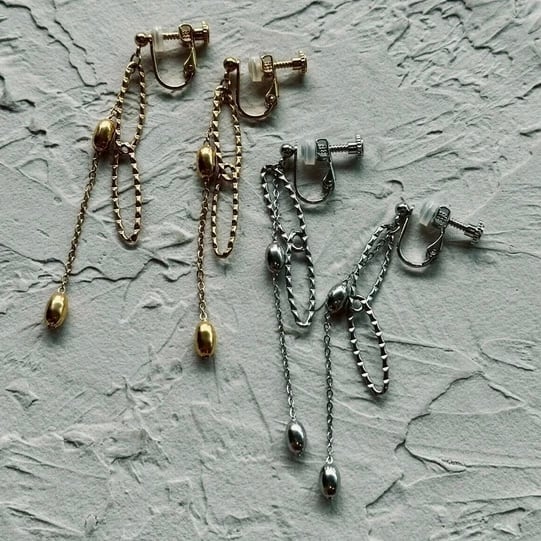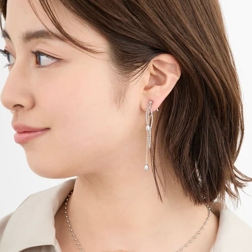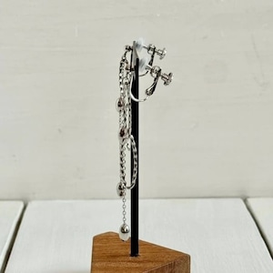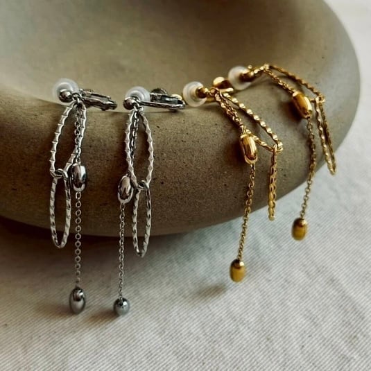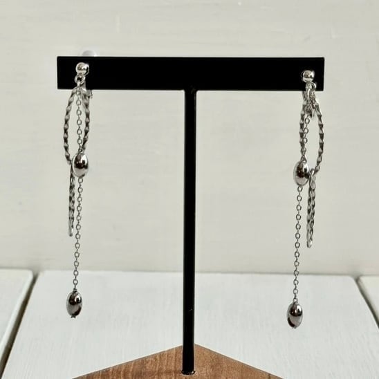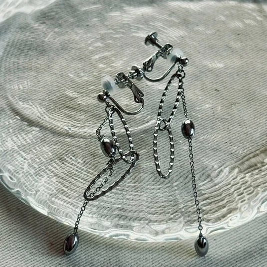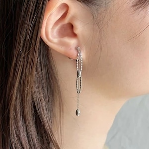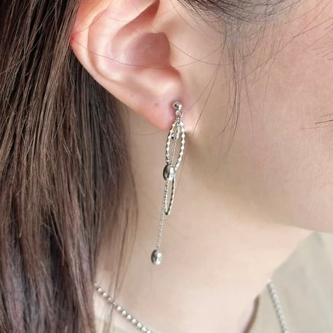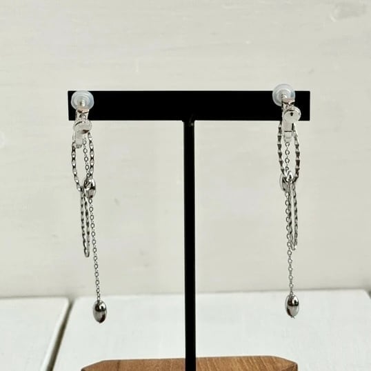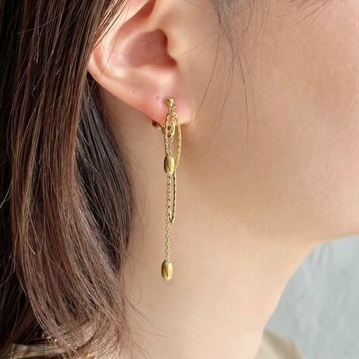 形違いのチェーンが揺れるサージカルステンレスイヤリング。