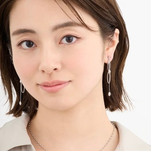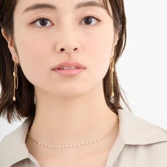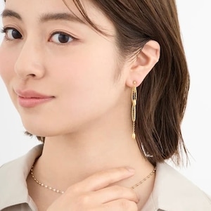大ぶりなオーバルチェーンとパーツを組み合わせたシンプルチェーンがお顔周りにも華さを持たせた印象深いフォルム。