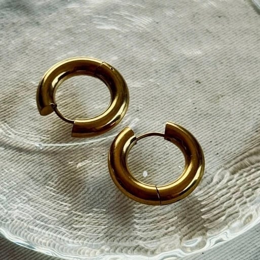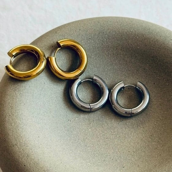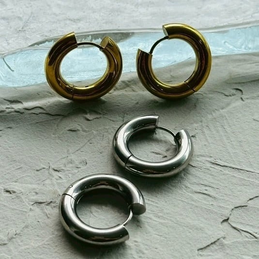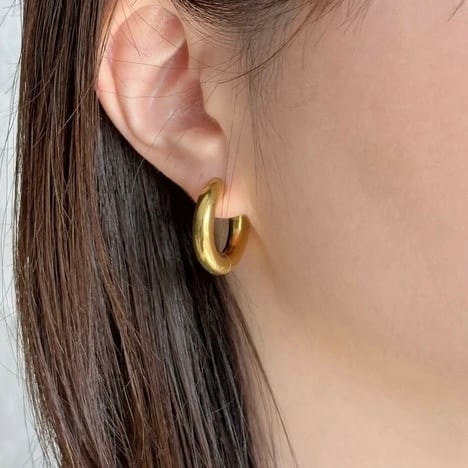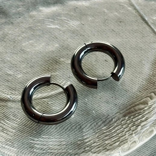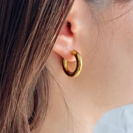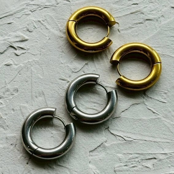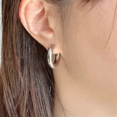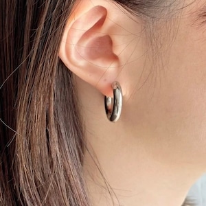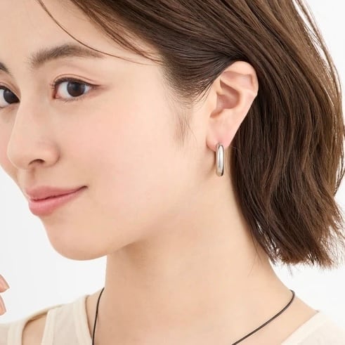 様々なスタイリングと好相性のサージカルステンレスフープピアス。
