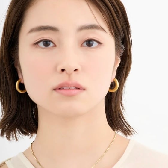 ピアスの王道スタイルでありながら程よいボリューム感をもたせ、ミニマルさを保ちながら存在感を発揮したルックスです。
