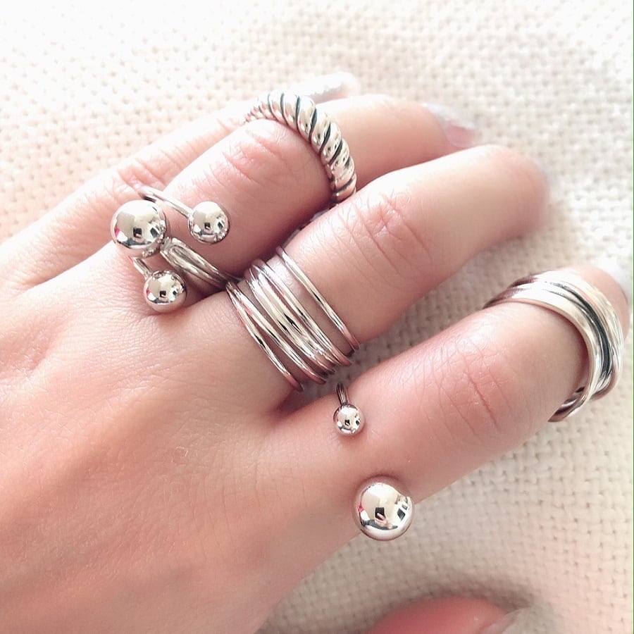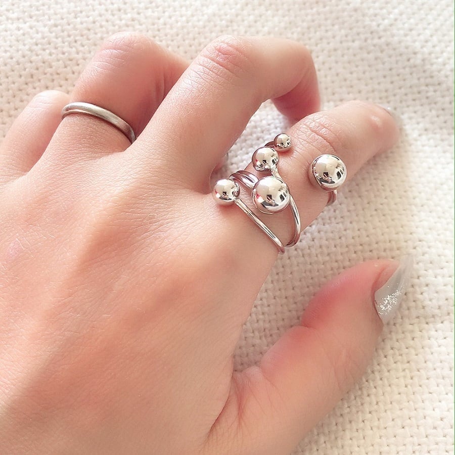 silver925素材のスリーボールリング。