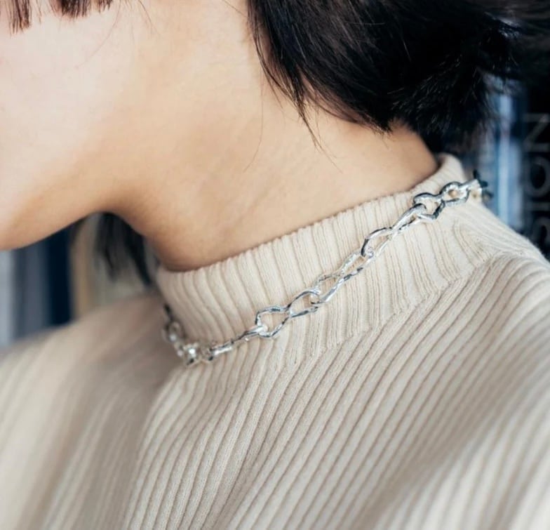 ピーナッツ風チェーンが連なった、存在感のあるネックレス。