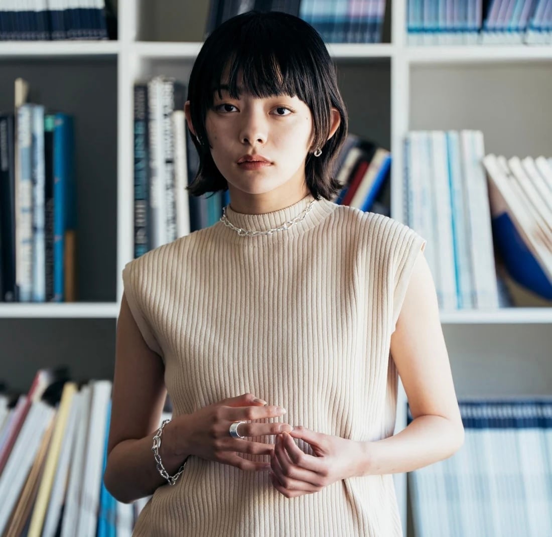 槌目のあるチェーンが光を反射し、明るい首元に仕上げます。
