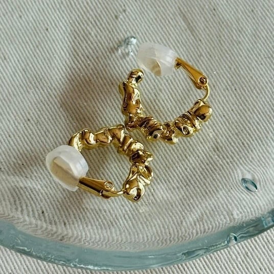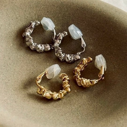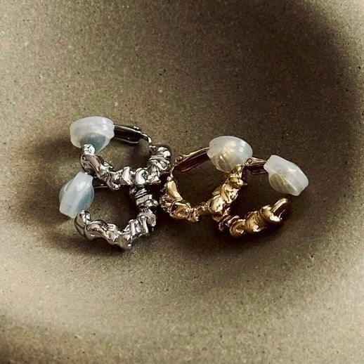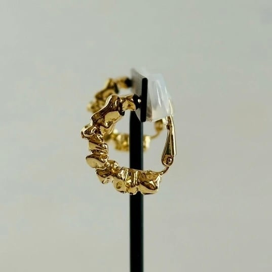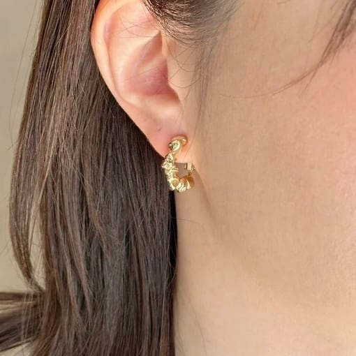 不規則にボコボコとしたシルエットが目を惹くイヤリング。