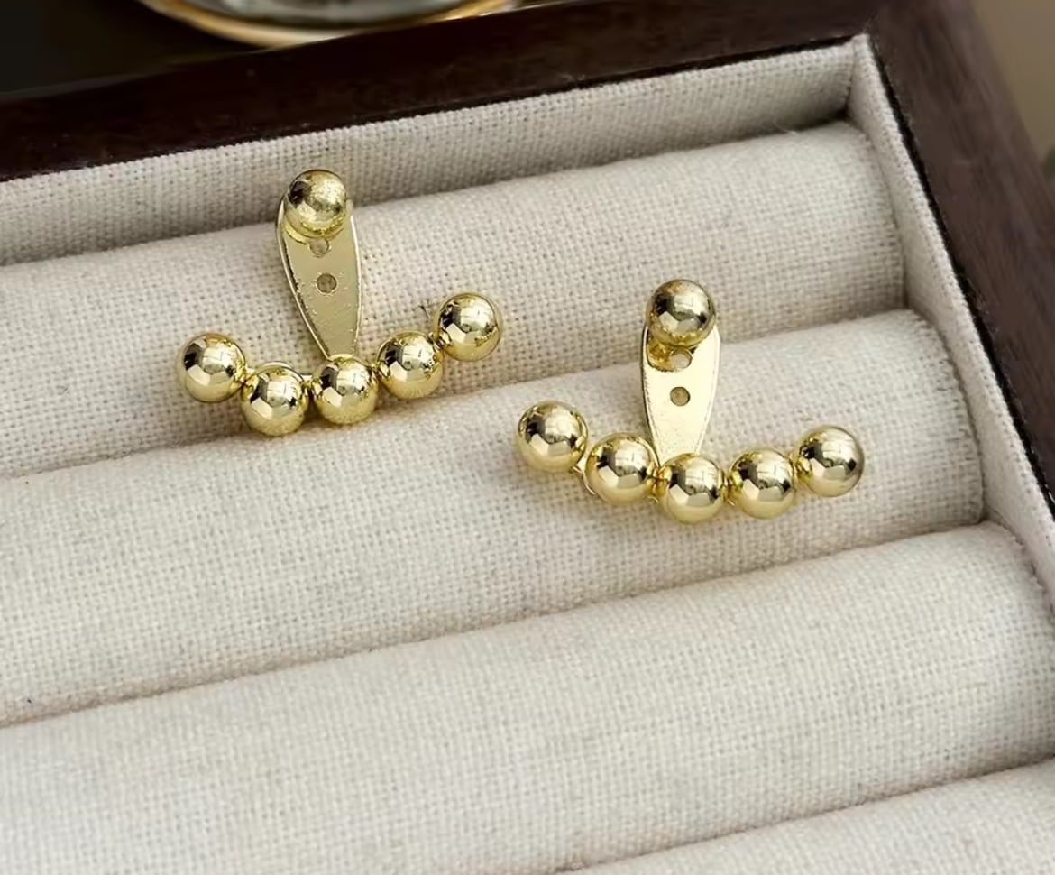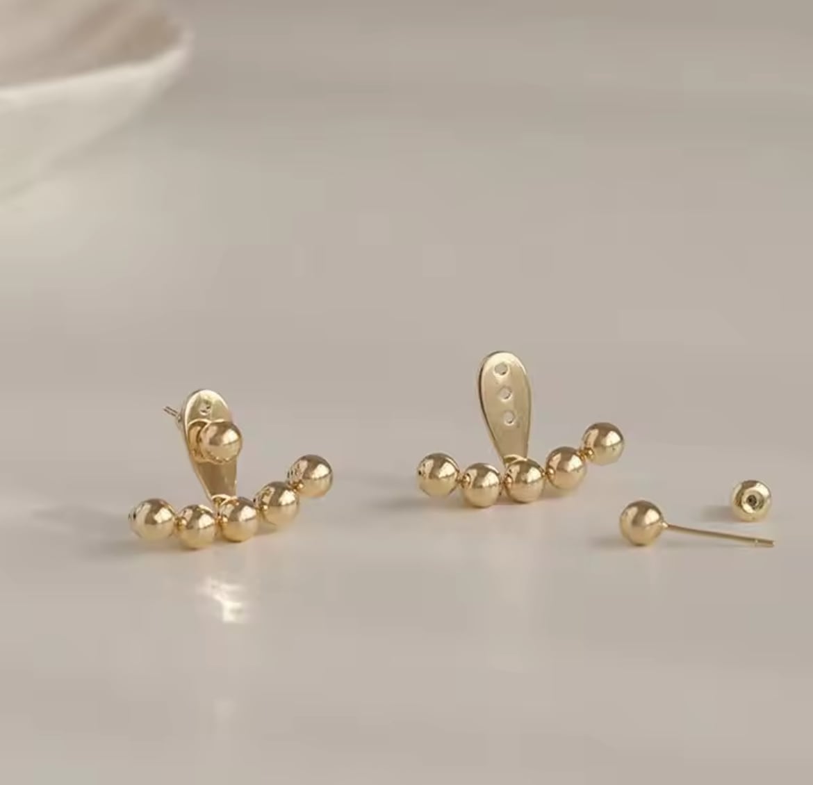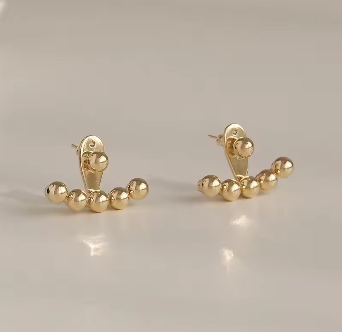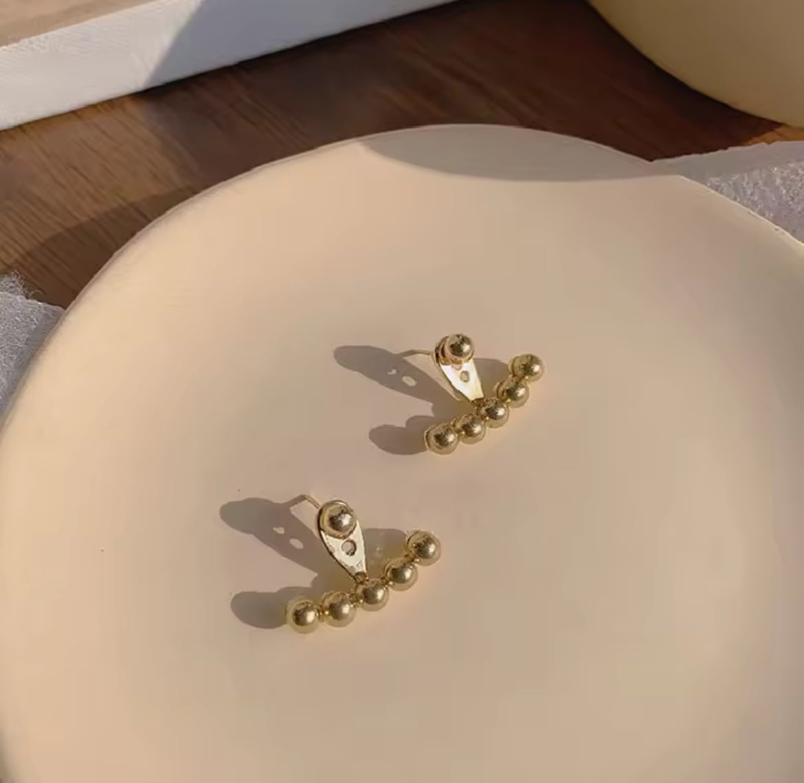 耳に沿ってカーブ状にメタルボールを描いた、特徴的なデザインピアス。