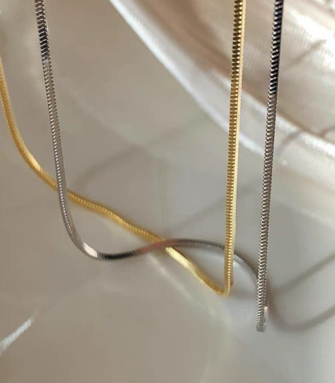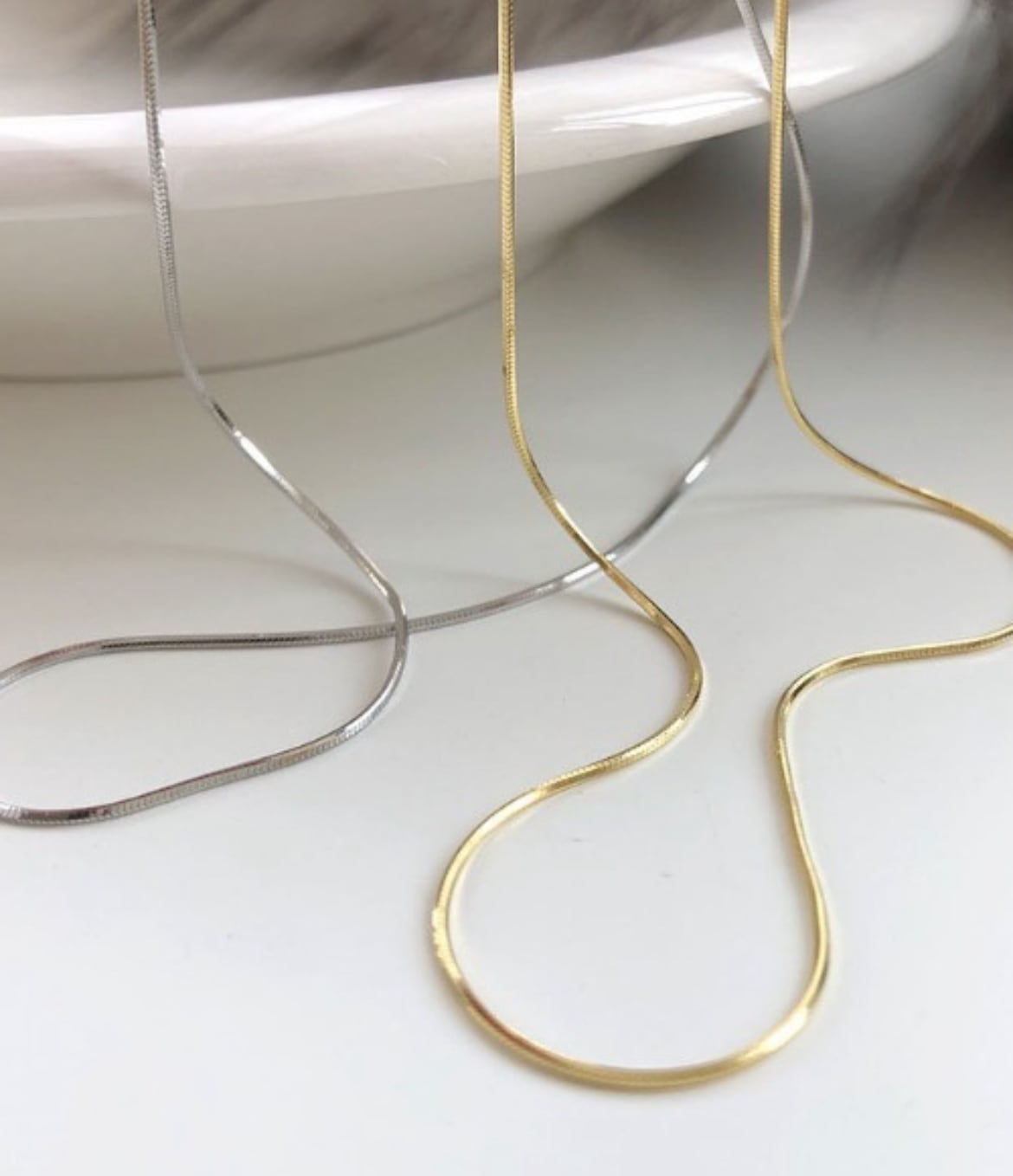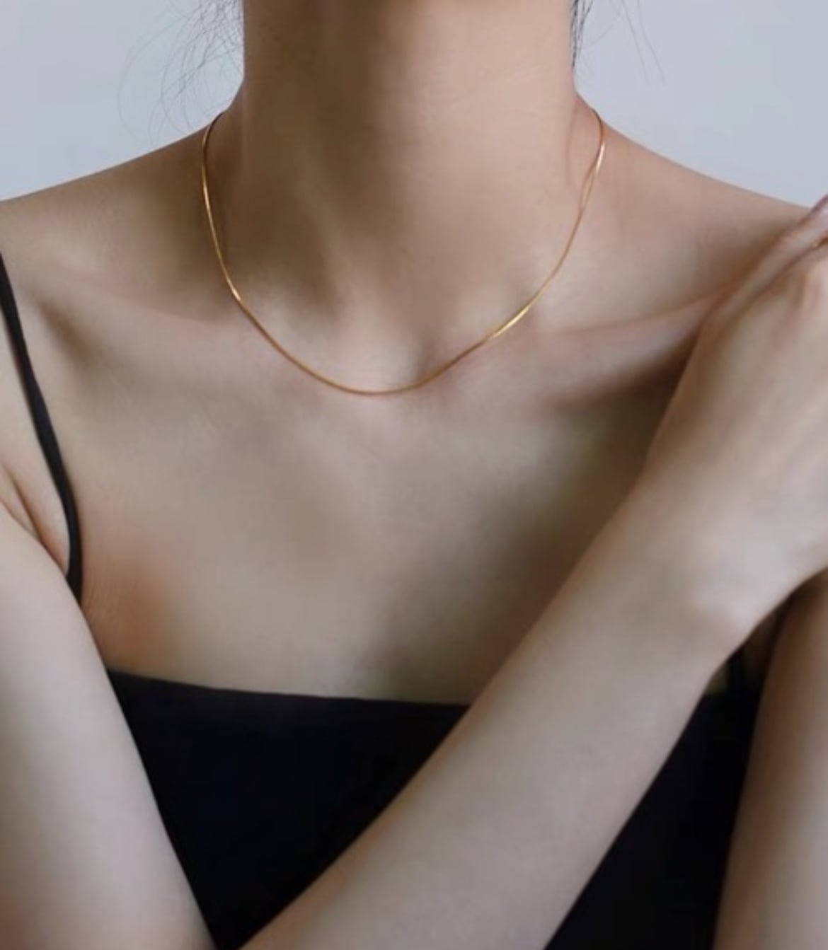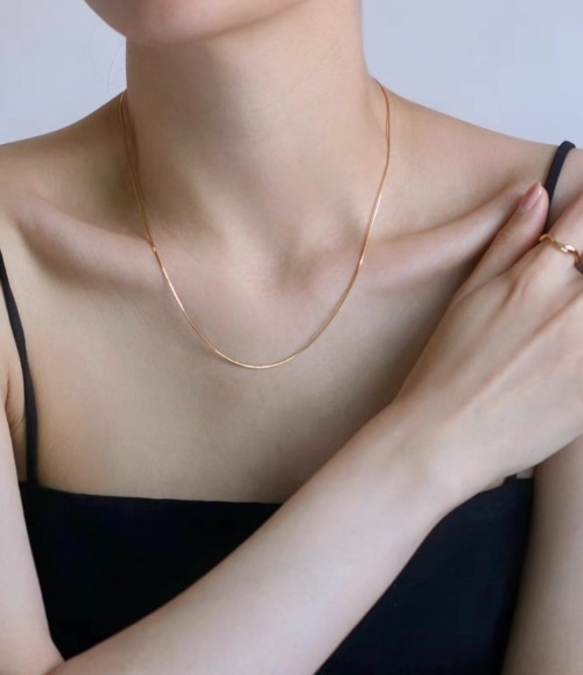 存在感がありがらも軽やかで着けやすいスネークチェーンネックレス。