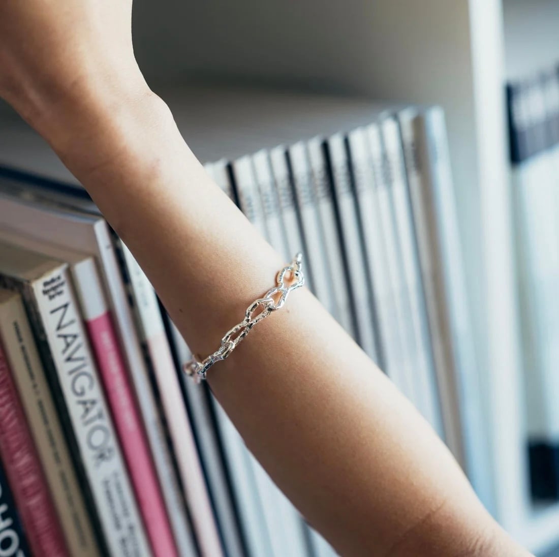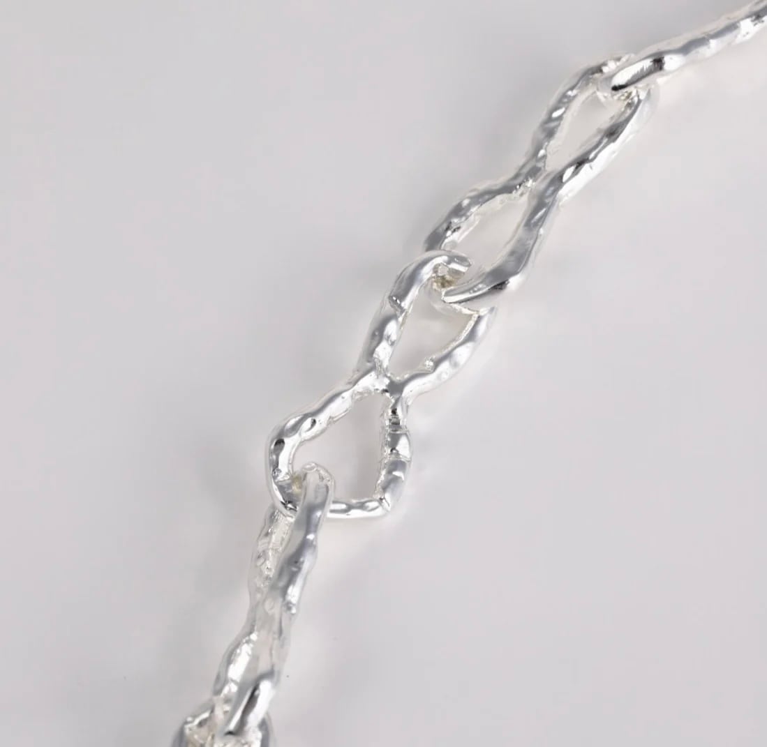 槌目のあるチェーンが光を反射し、明るい手元に仕上げます。