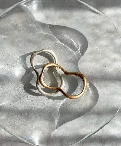 シンプルながらもひねりを効かせたニュアンスたっぷりなデザインリングは、女性らしい上品な手元を演出し、つけるだけで周りと差がつく手元のアクセントに。