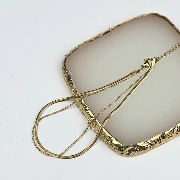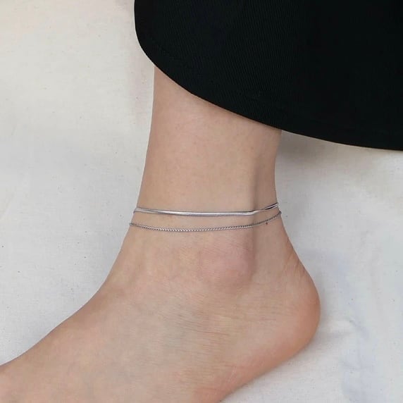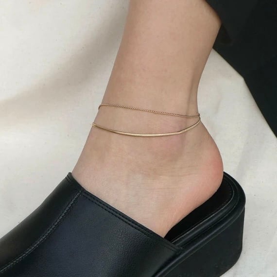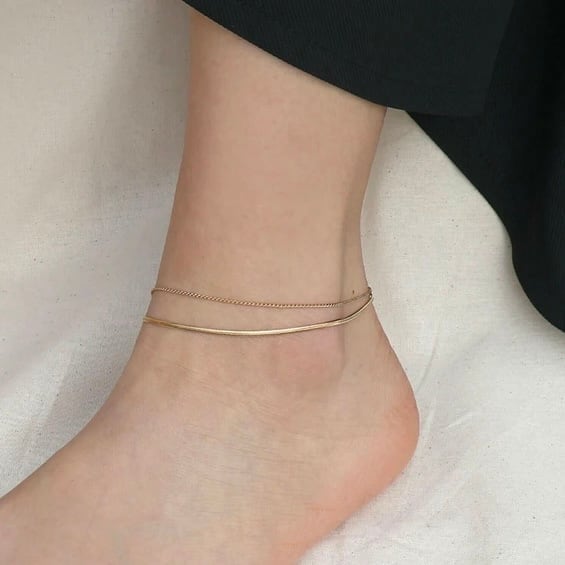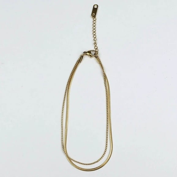 華奢なチェーンに、スネークチェーンを組み合わせた2連アンクレット。
