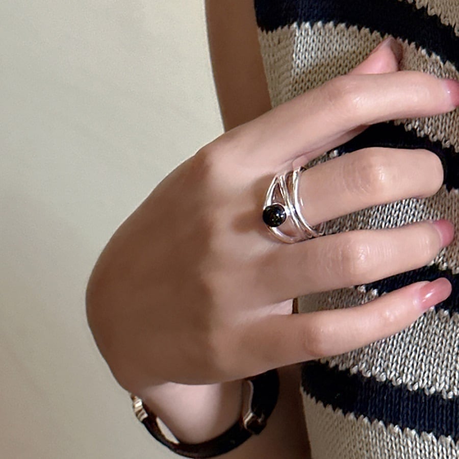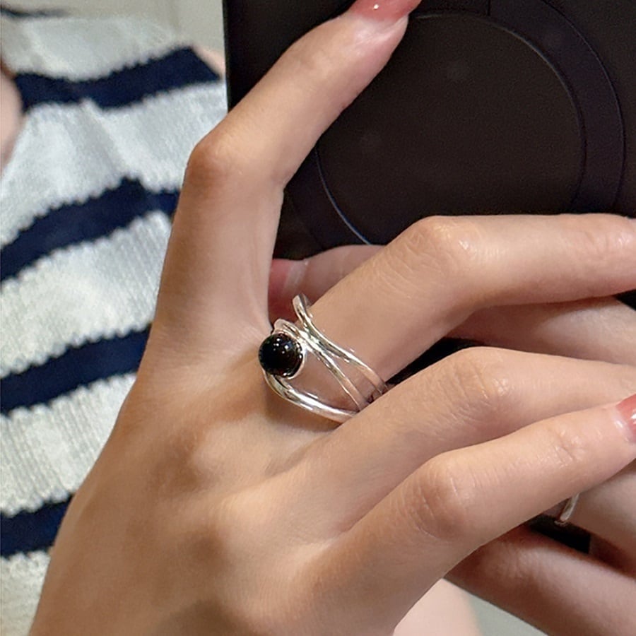 ブラックアゲートが一際、目を惹くリング。