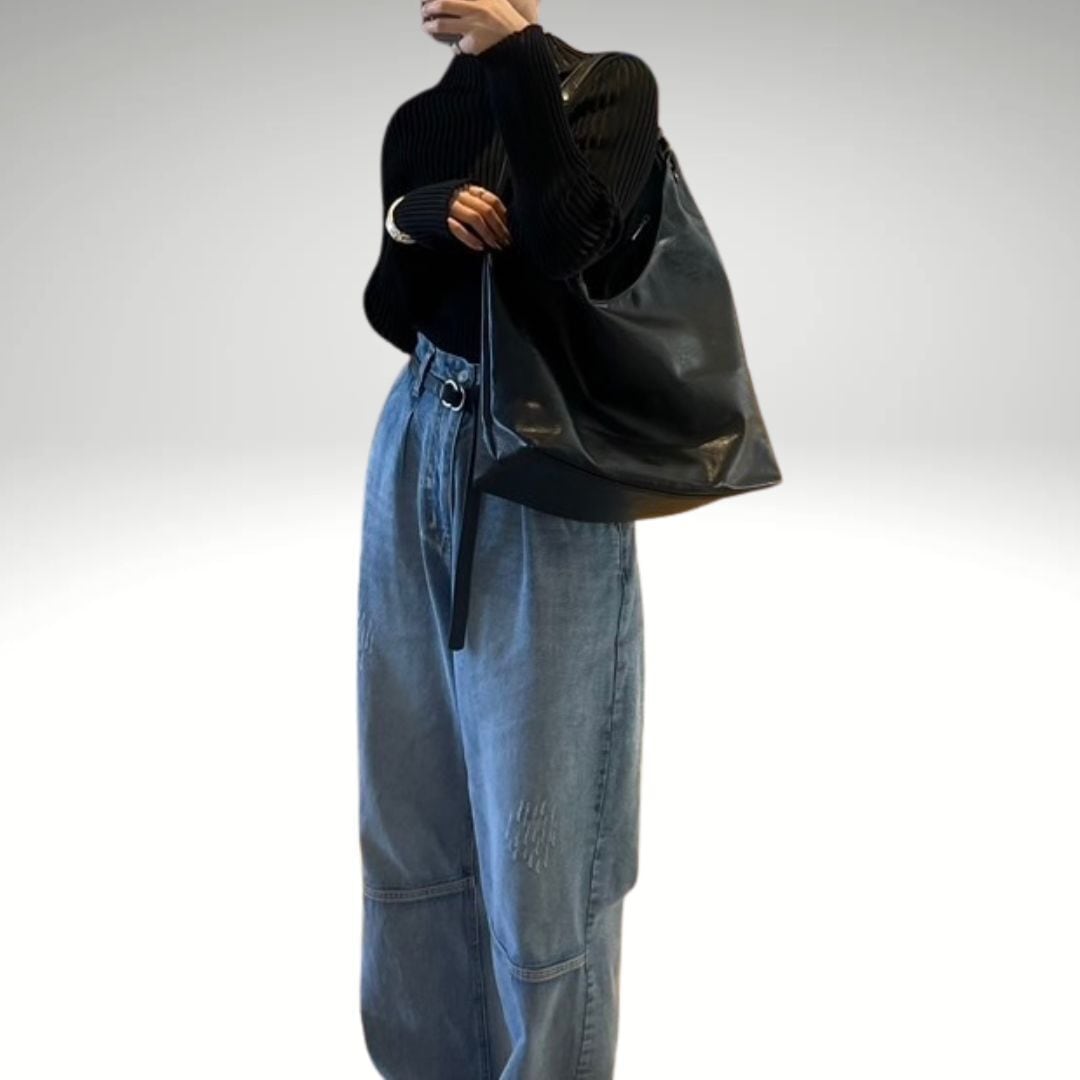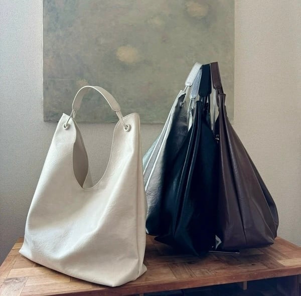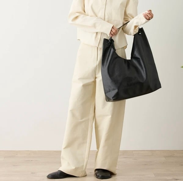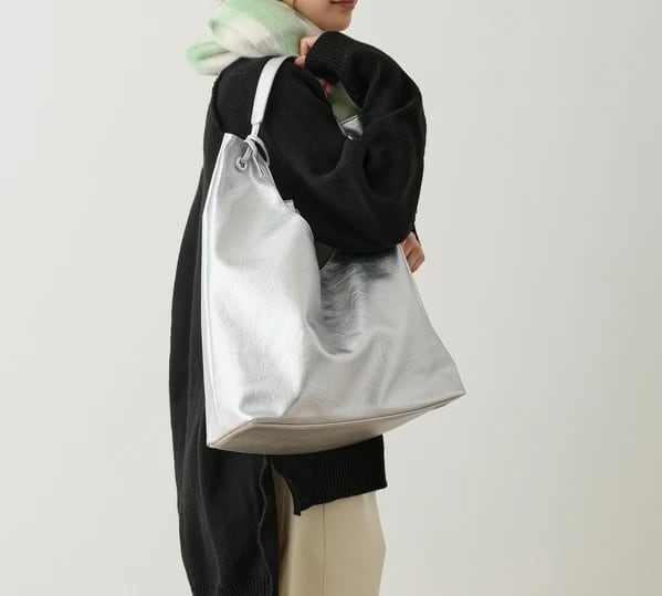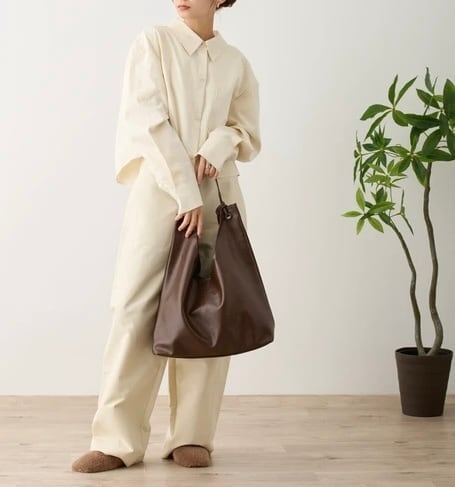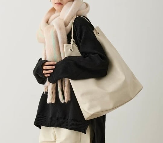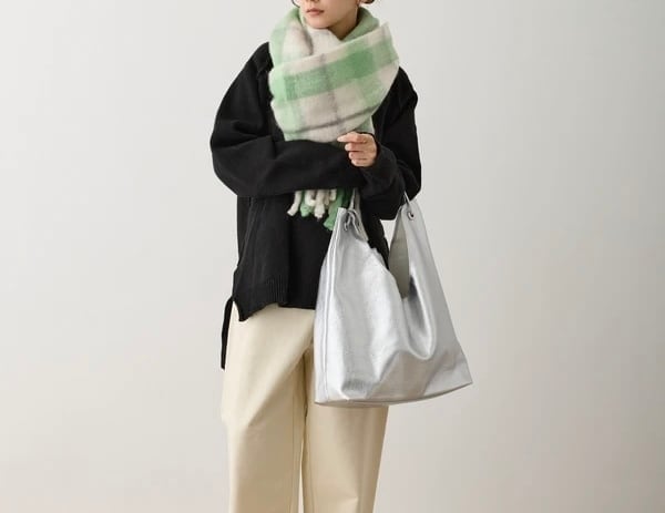 ロングハンドルなのでボリュームのあるアウターと合わせても肩掛けしやすく便利◎