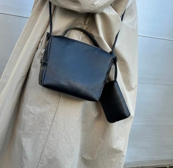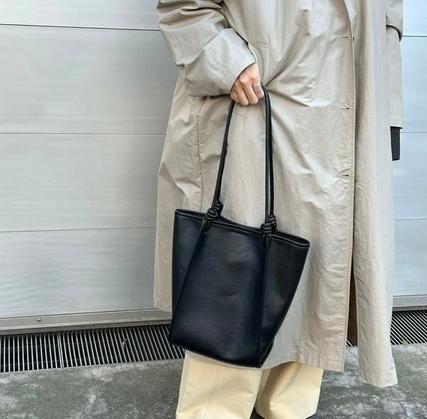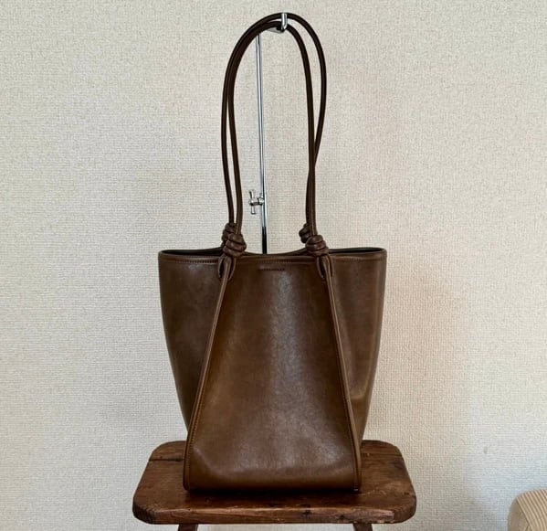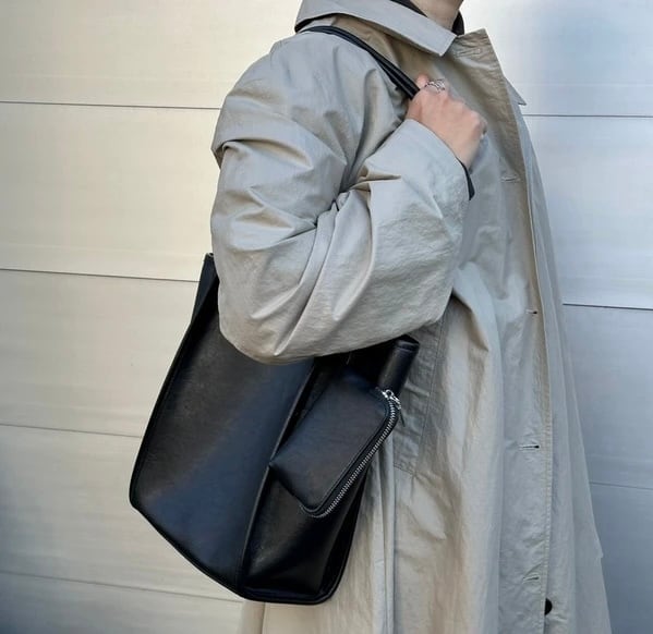 それぞれが単独で活躍できるバッグで、一番大きいサイズでA4サイズがスッポリと収まるスクエア型のトートバッグ。