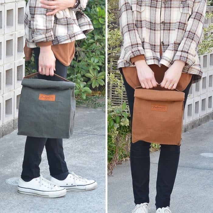 ワックスコーティングを施したキャンバス生地が、どこかビンテージ感を醸し出しているランチバッグ。