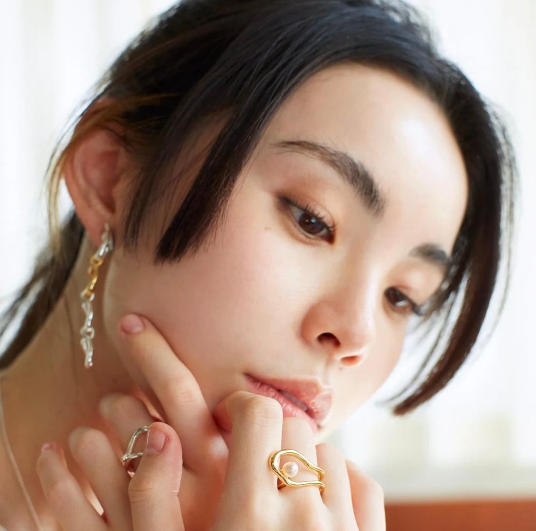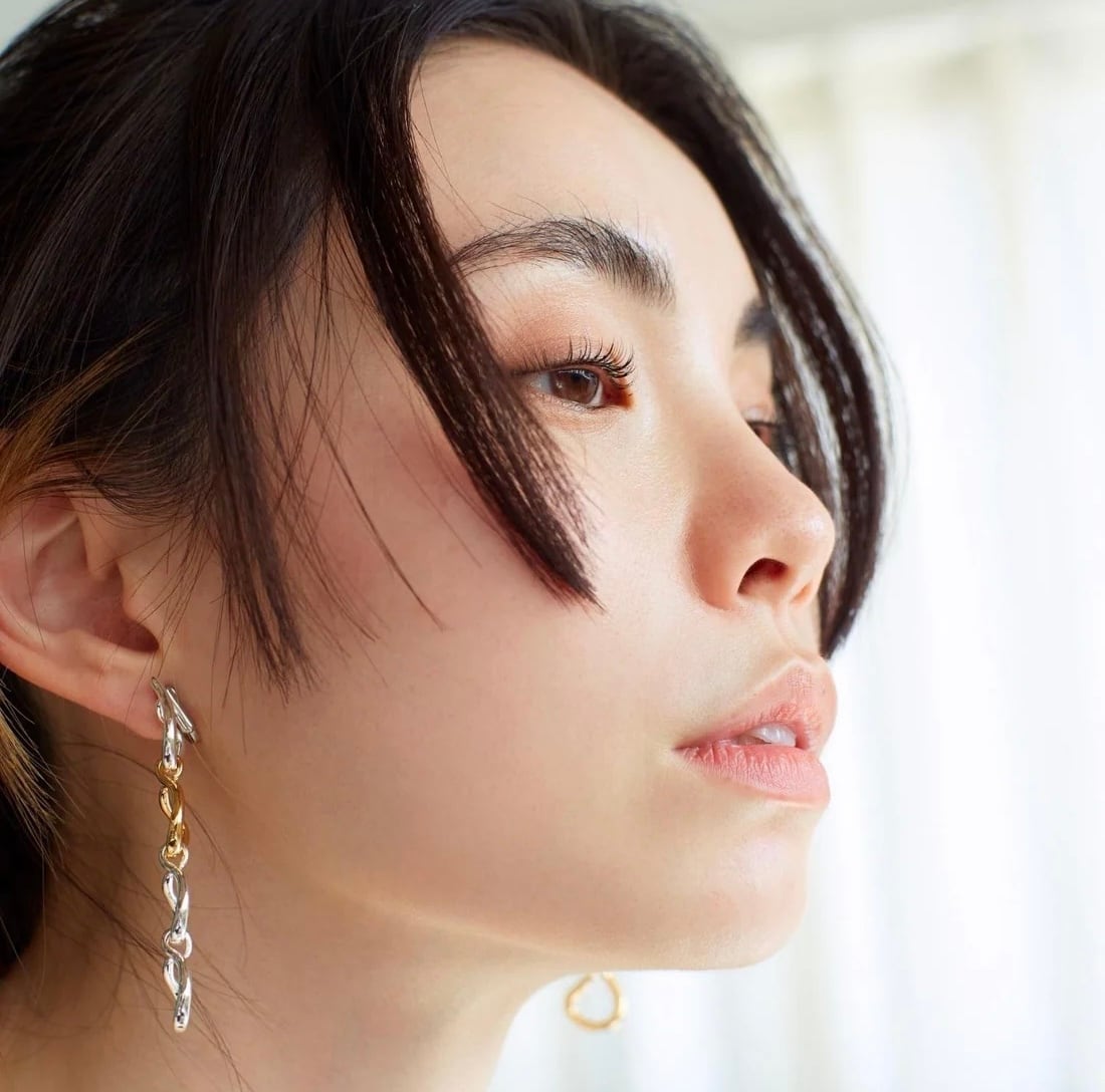 特徴のあるデザインチェーンが耳元で揺れ、顔周りを華やかにしてくれます。