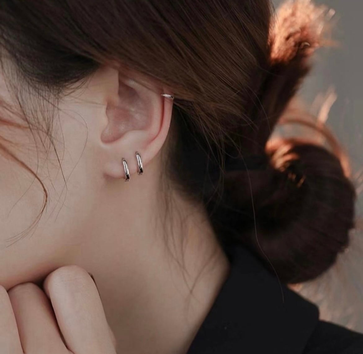 華奢で小さめのフープが耳に添う、silver925製のピアス。
