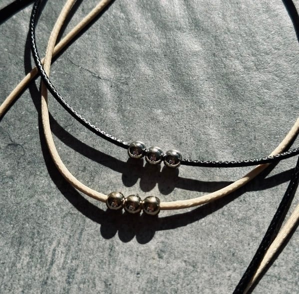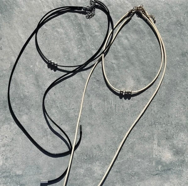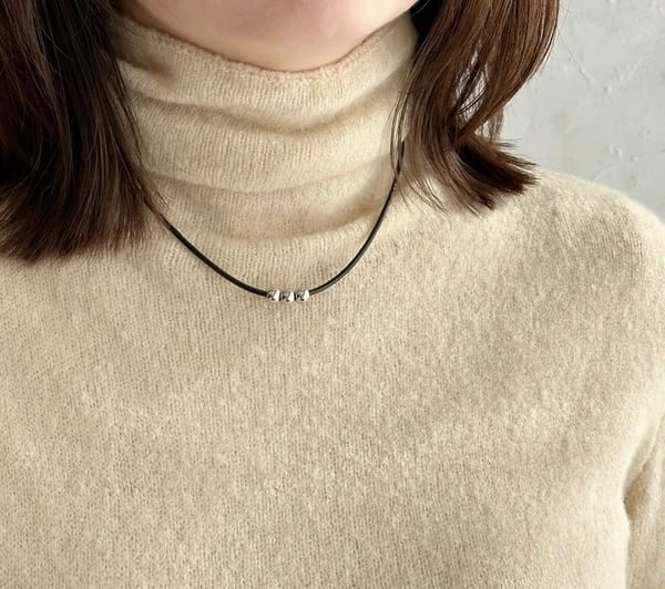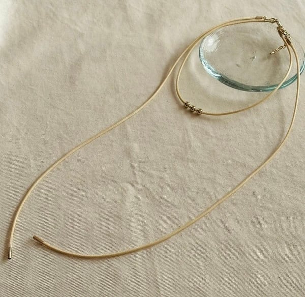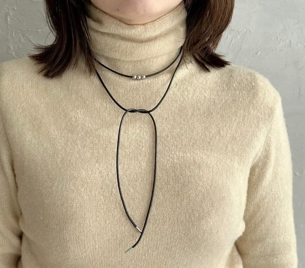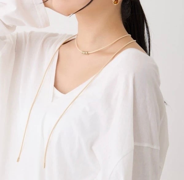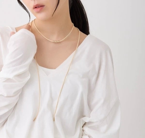 2連の紐はそれぞれに外すくことができ、単体で違うネックレスとして楽しめる仕様。
