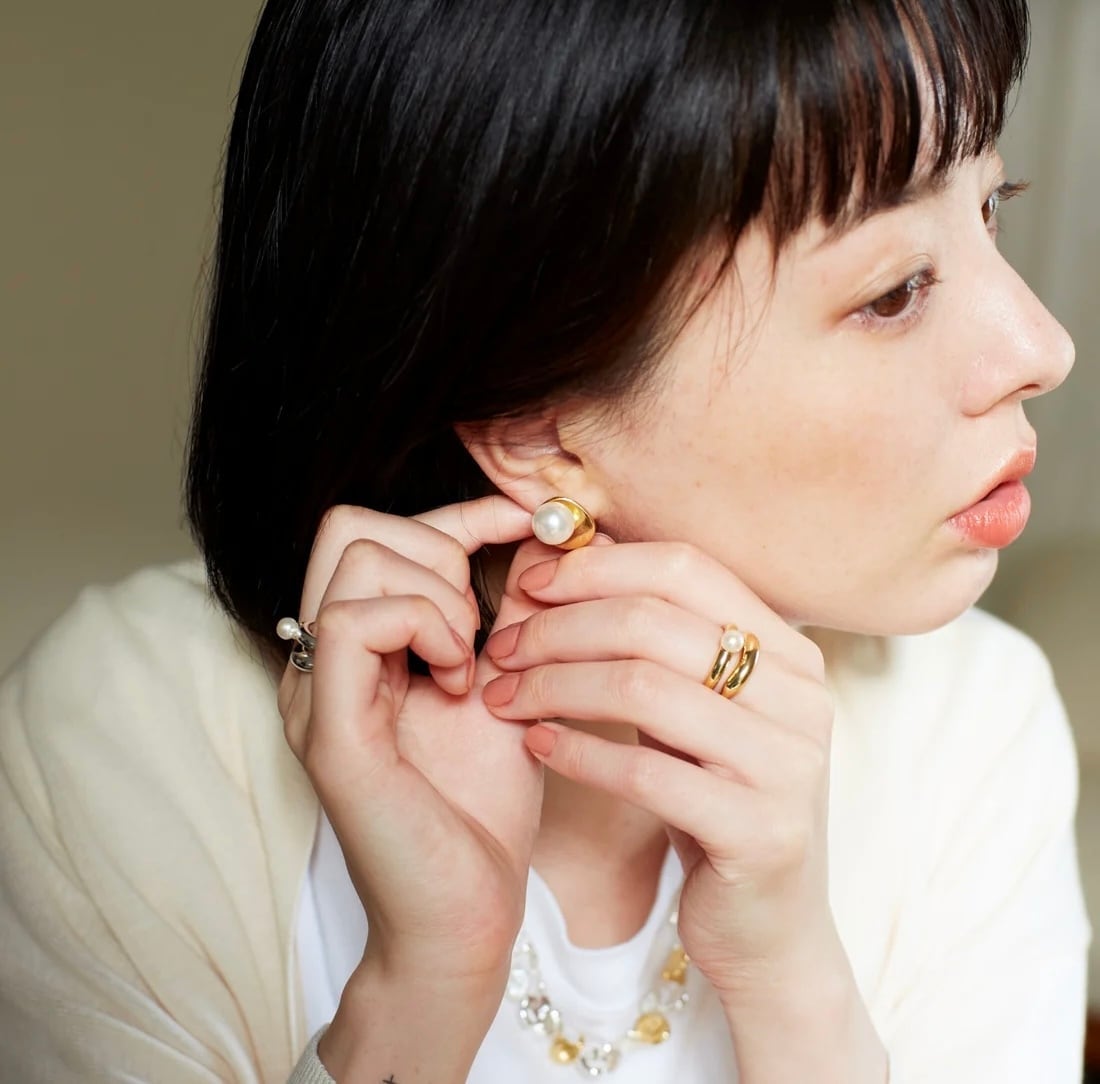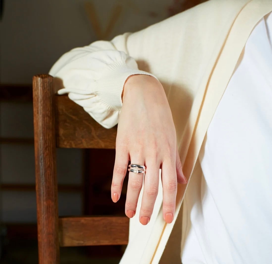 1つでもコーディネートのポイントになりますが、お手持ちのリングと組み合わせてお使いいただくのがオススメです。
