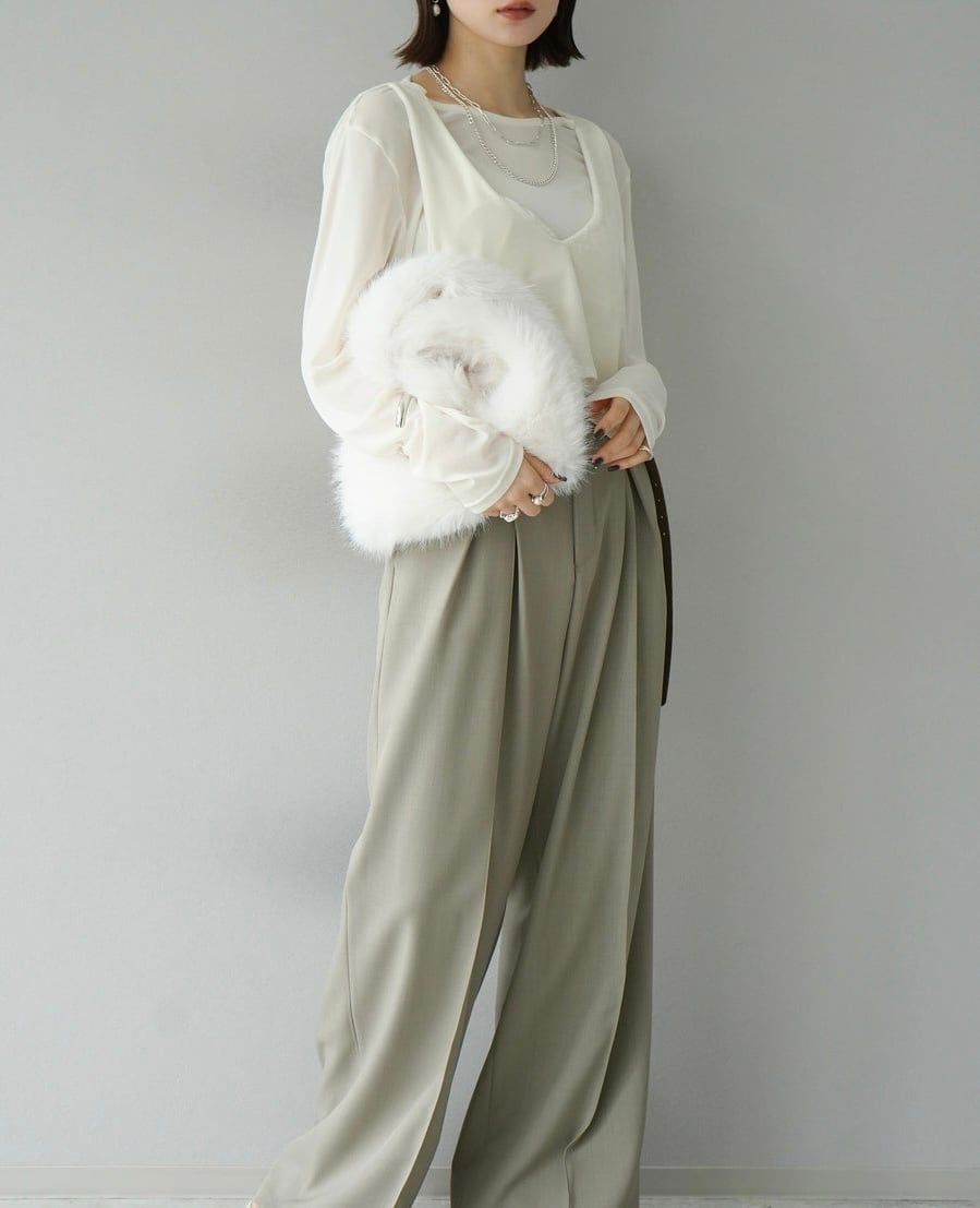 持ち方もアレンジ可能で巾着風にもなるので、様々なコーディネートにお使い頂けます。