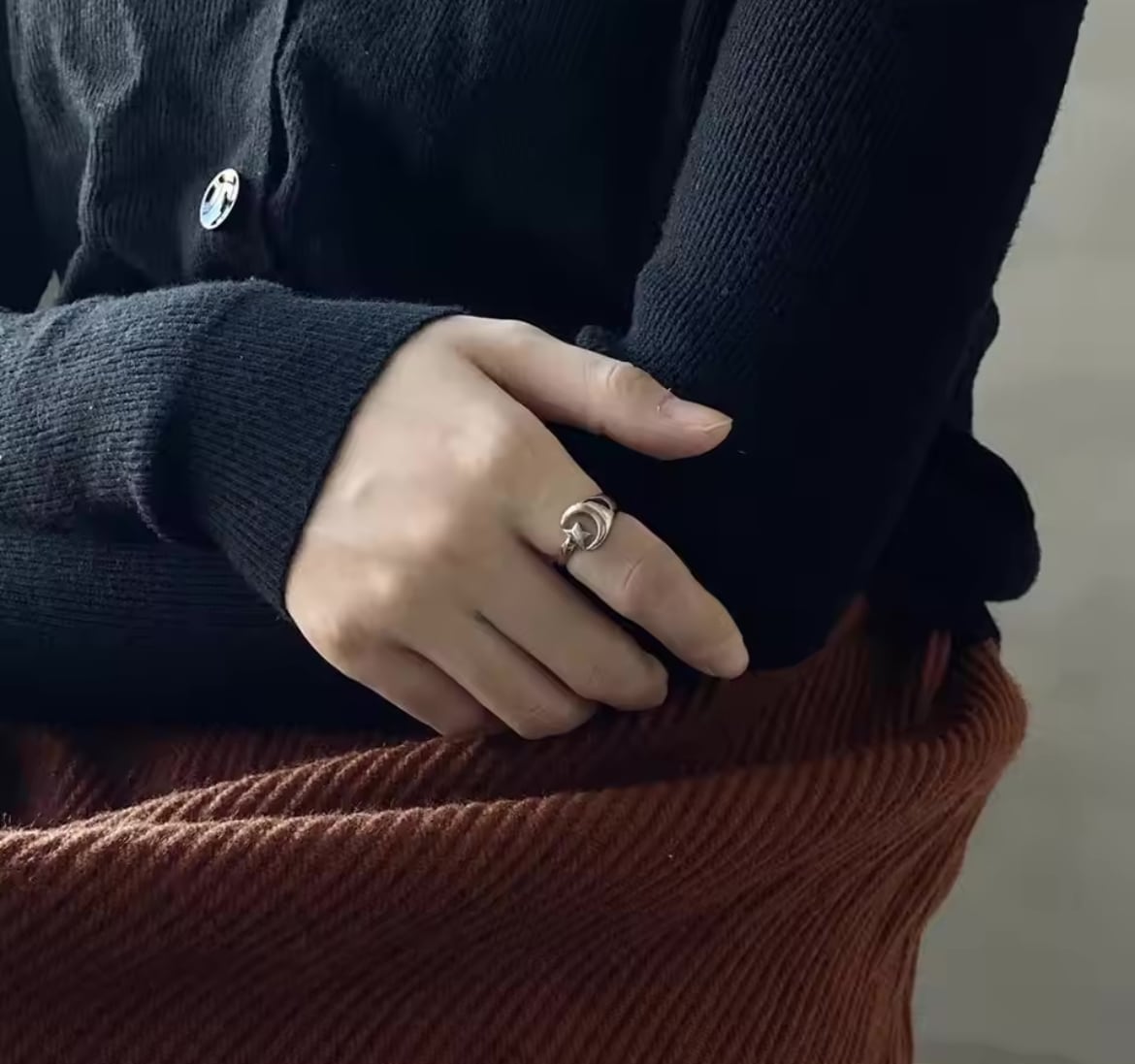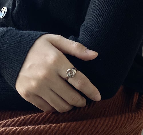 ひとつでも存在感がありますが、お手持ちのリングとの重ね付けにもおすすめ。