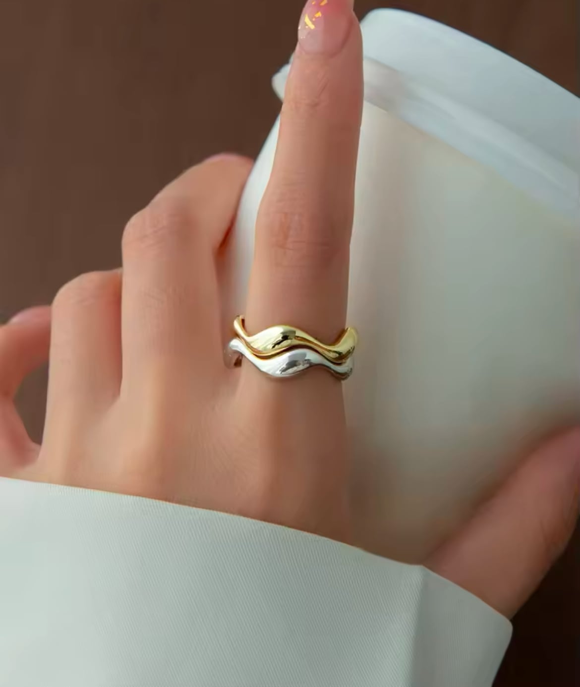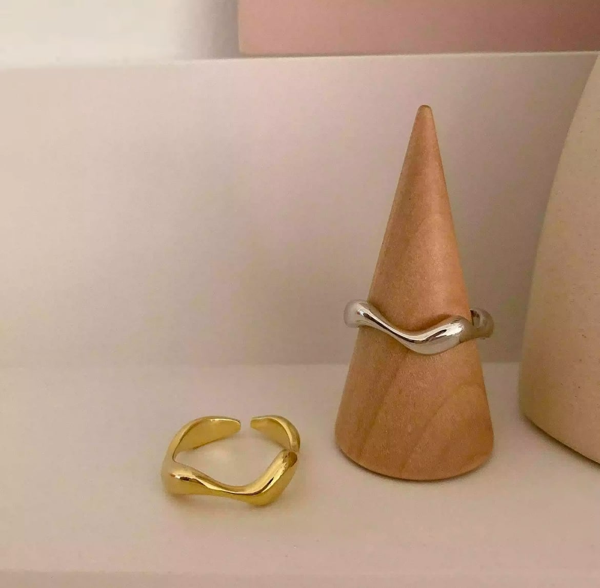 波打つように滑らかなフォルムのウェーブリング。