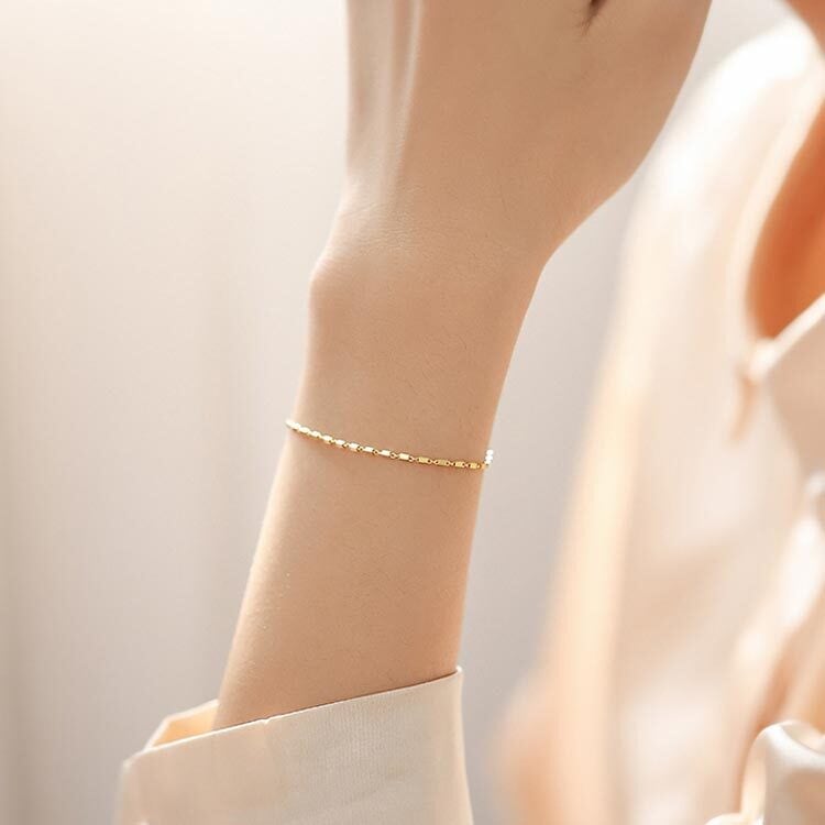 3mmのボックスを繋いだ、癖がなくカジュアルになり過ぎないチェーンのブレスレット。