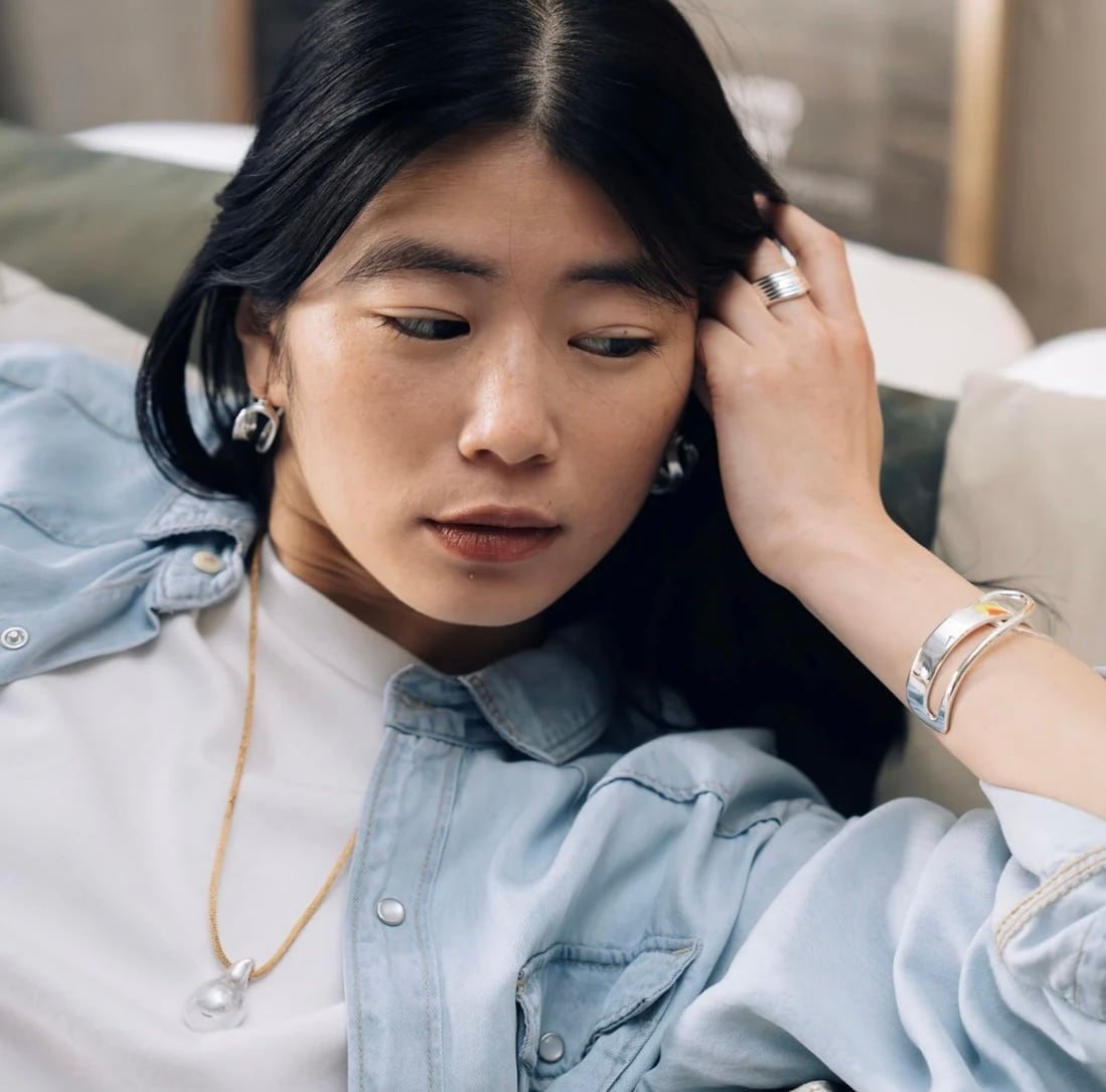 同じような平行ラインを取り入れた同シリーズのバングルやピアスもございます。