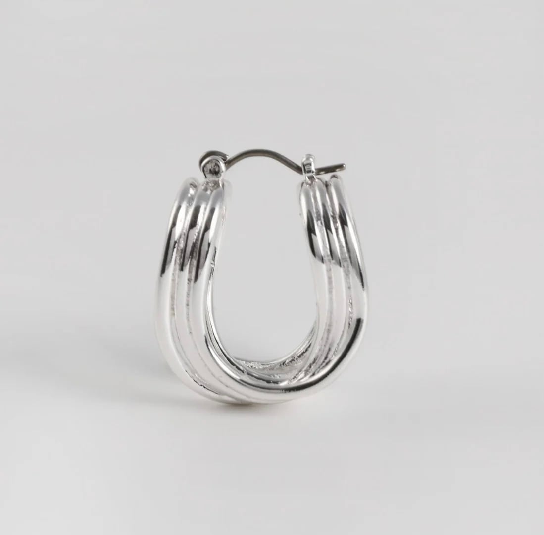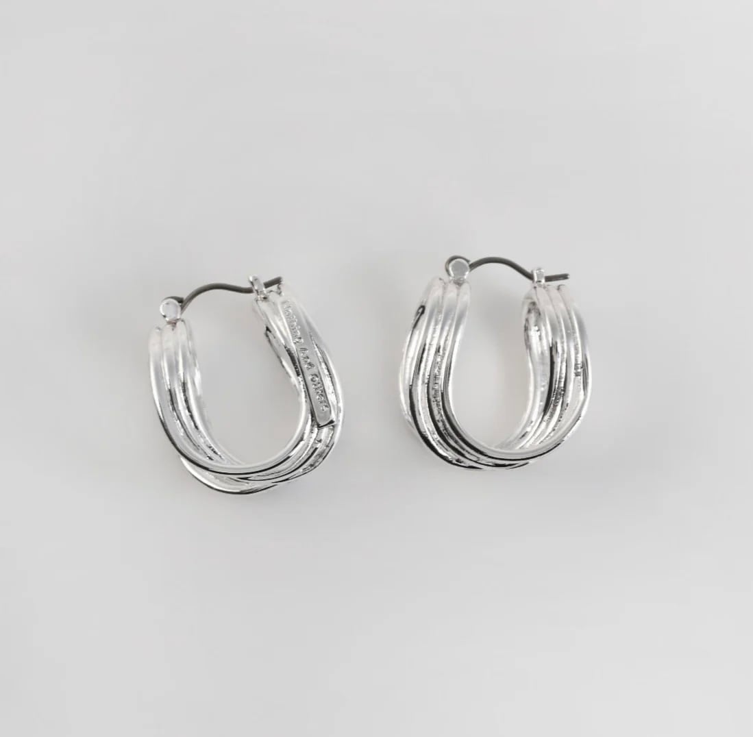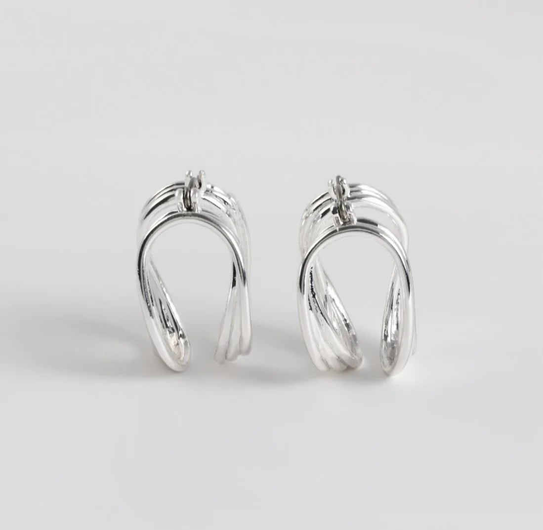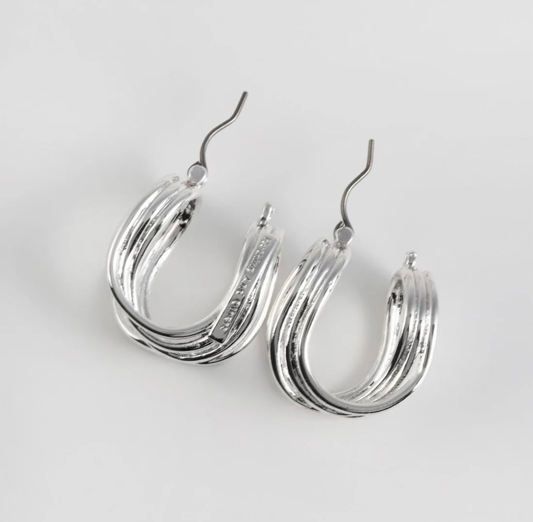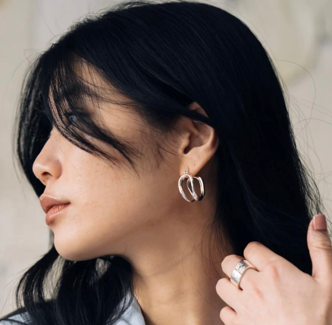 細いラインを重ねたラインでデザインされたフープ型ピアスです。