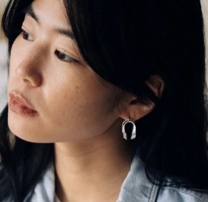 ニュアンスフープを2つ折りにしたように見えるようにこだわり、デザインをしております。